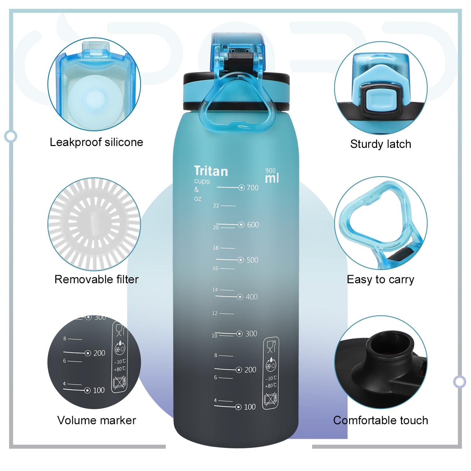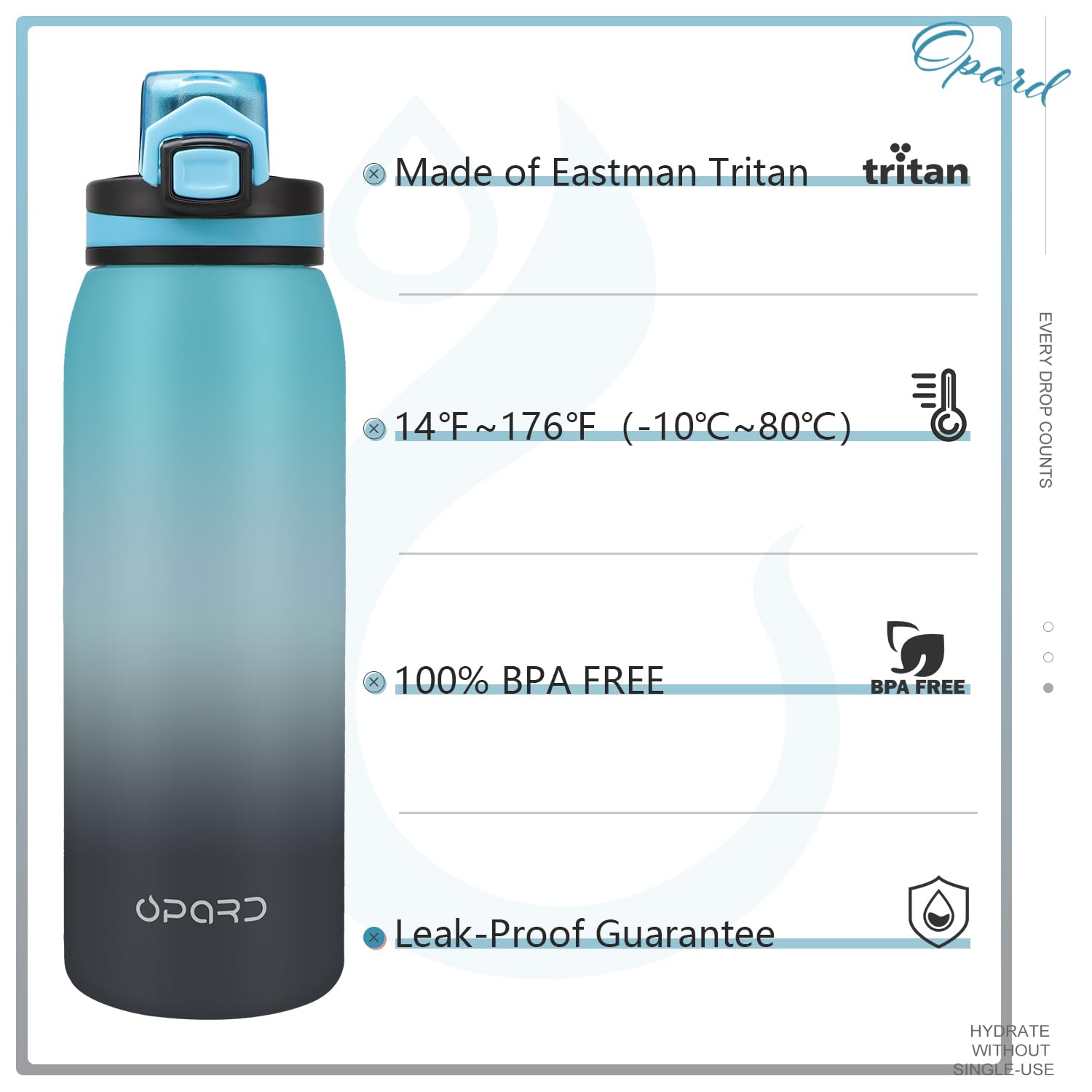 Opard 30oz Sports Water Bottle with Leak Proof Flip Top Lid BPA Free Tritan Reusable Plastic for Gym and Outdoor