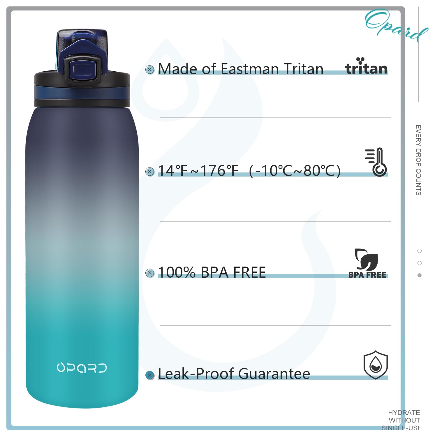 - 【HYDRATE WITH REUSABLE】- Opard has been devoted to reducing the usage of disposable plastic since the first day. We have been helping poor countries build their system of recycling waste plastics for years. Join us, starting with drinking with reusable bottles.