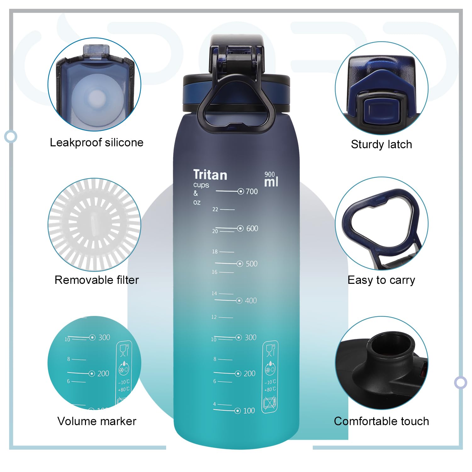 - 【BPA & TOXIN FREE】- Made of Tritan, the best safe and durable plastic for bottles. Non-toxic and eco-friendly, yet still do not put the bottle into the dishwasher.