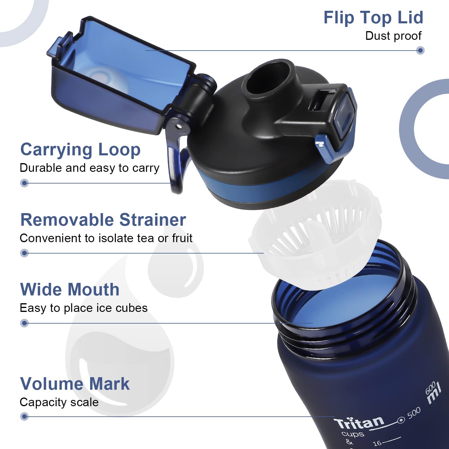 Opard Peak Water Bottle 20 Oz BPA Free Tritan Plastic Leak Proof Flip Top for School Kids Sports Gym Yoga Camping (Blue)