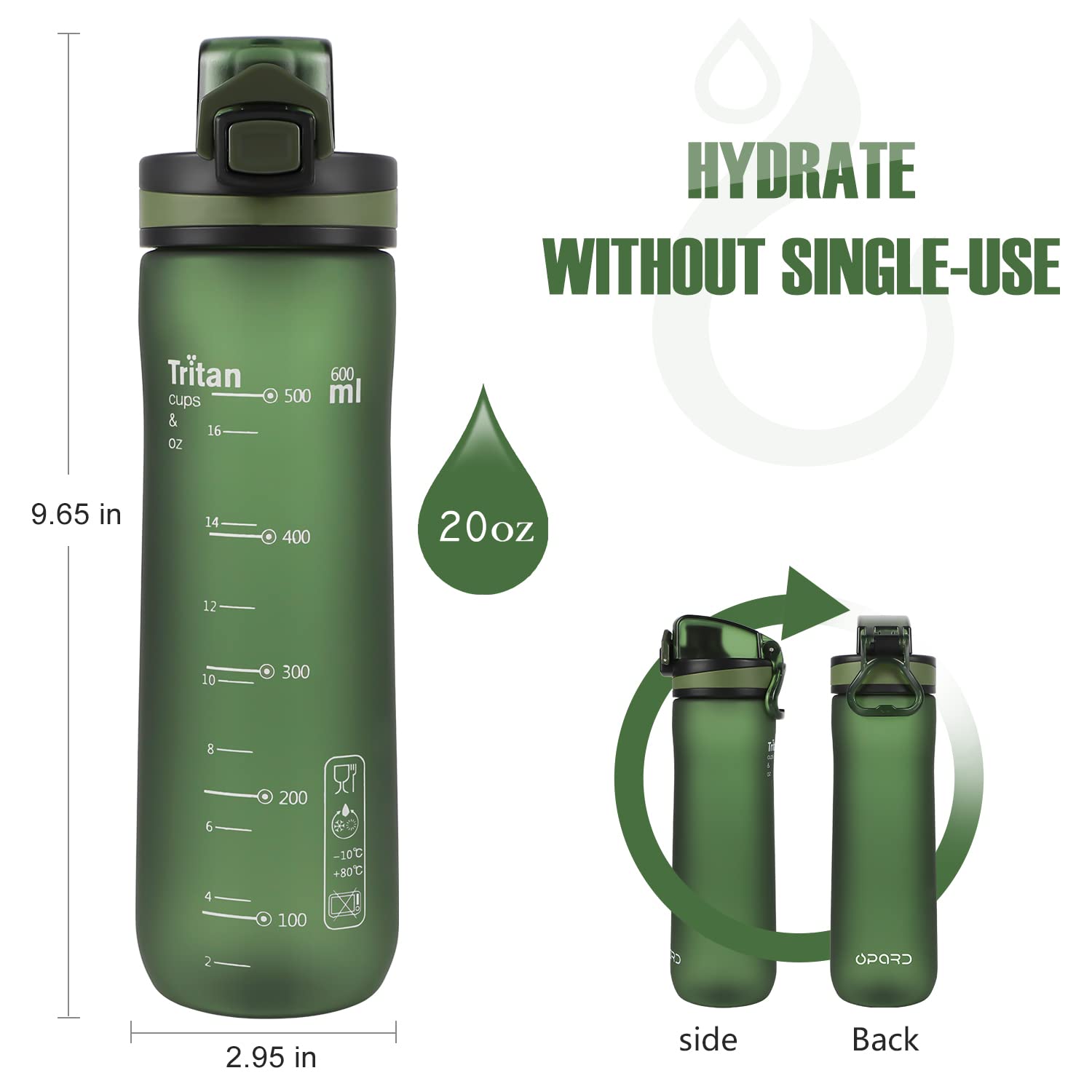 Opard Peak Water Bottle 20 Oz BPA Free Tritan Plastic Leak Proof Flip Top for School Kids Sports Gym Yoga Camping (Dark Green)