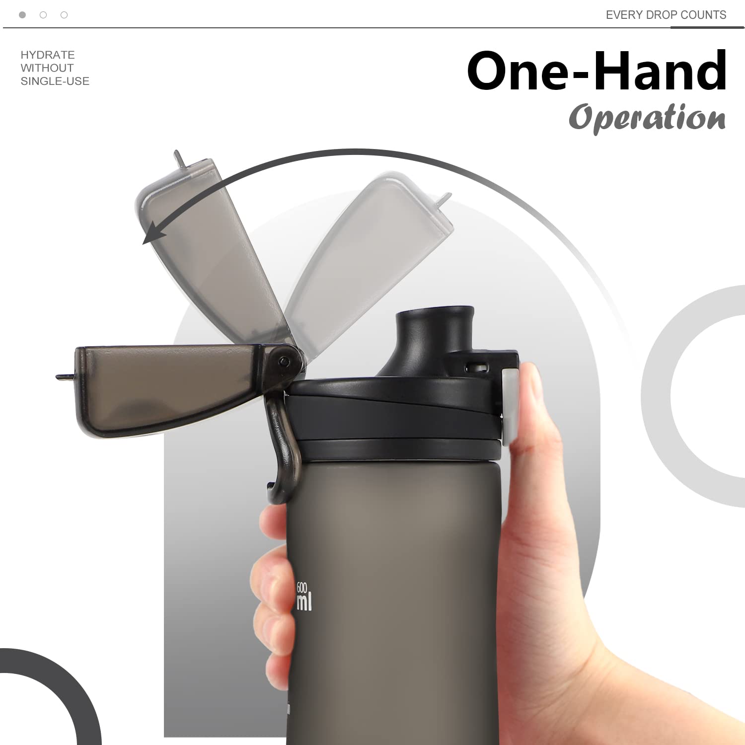 - DRINK WITH SINGLE HAND -- Designed to be slim and easy to hold. You can pop up the lid, drink, and lock up with a single hand, which makes hydrating convenient while you are driving or jogging, or stuck on something.