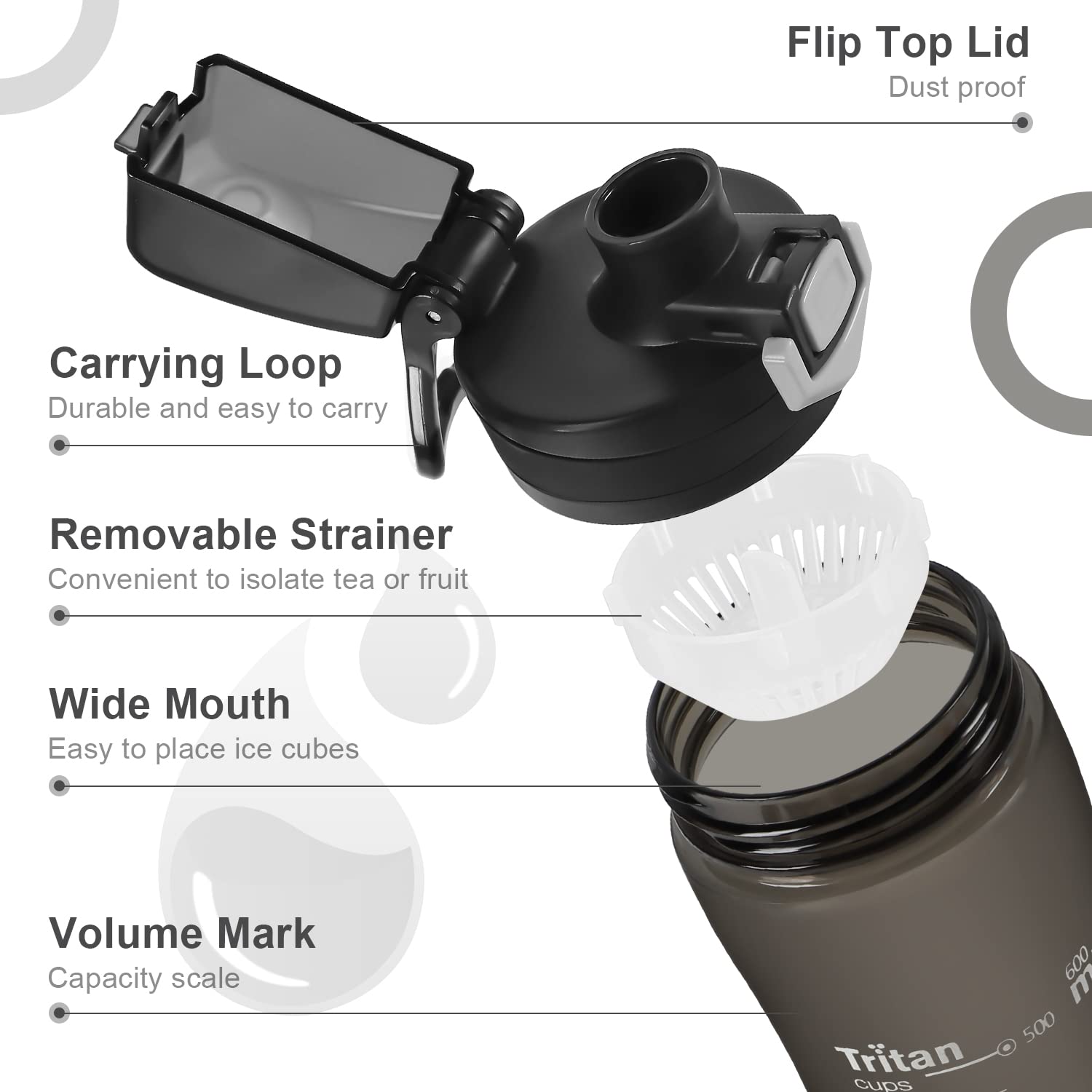 - BPA-FREE -- Made of Tritan, the best safe and durable plastic for bottles. Non-toxic and eco-friendly, yet still do not put the bottle into the dishwasher.