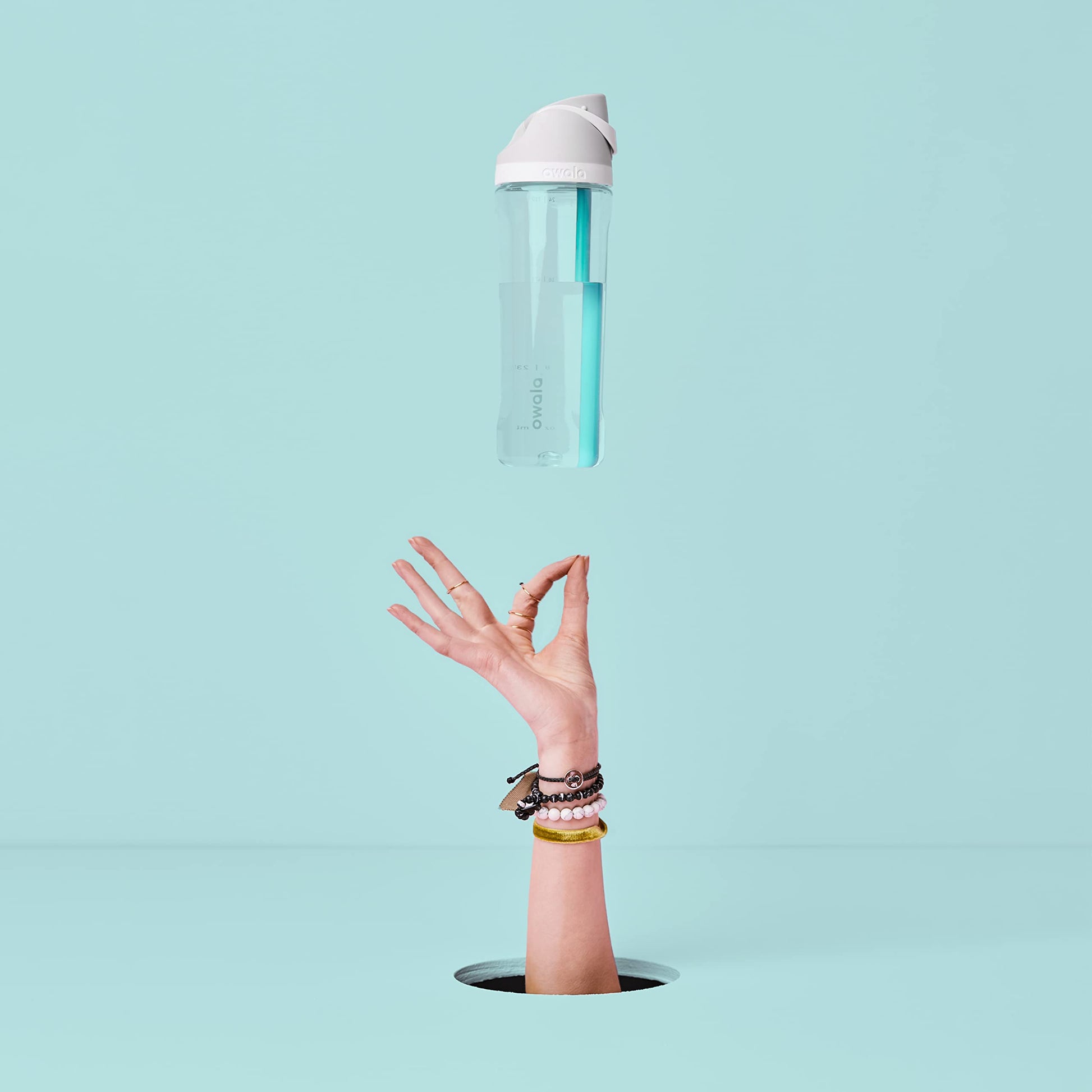 Details: The Owala FreeSip Tritan Water Bottle with Locking Push-Button Lid easily tackles every thirst. With a built-in, easy-clean straw and a wide-mouth opening, the FreeSip reusable bottle is designed for drinking two different ways: sipping upright through the straw or tilting back to swig from the wide-mouth spout opening. Add in a push-to-open lid and playful colors, and staying hydrated has never been simpler—or more fun. Additional features include a carry loop that doubles as a lock, a cup holder-friendly base, and a wide opening for easy cleaning and adding ice. The Owala FreeSip Tritan Water Bottle with Locking Push-Button Lid has a capacity of 25 ounces. Made from BPA- and phthalate-free, stain and odor-resistant durable Eastman Tritan plastic. Top-rack dishwasher safe. Manufacturer’s limited lifetime warranty.