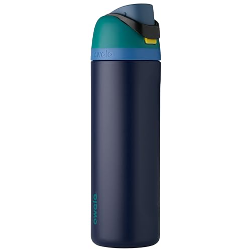 Owala FreeSip Insulated Stainless Steel Water Bottle with Straw for Sports and Travel, BPA-Free, 24-oz, Teal/Navy (Nautical Twilight)