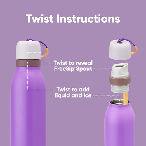 Owala FreeSip Twist Insulated Stainless Steel Water Bottle with Straw for Sports and Travel, BPA-Free, 24-oz, Purple/Purple (California Grapevine)