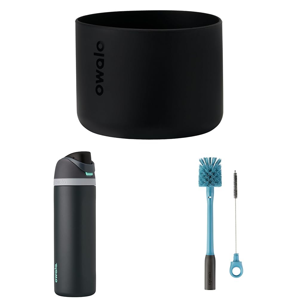 Owala Silicone Water Bottle Boot, Anti-Slip Protective Sleeve & FreeSip Insulated Stainless Steel Water Bottle & 2-in-1 Water Bottle Brush Cleaner and Water Bottle Straw Cleaner Brush