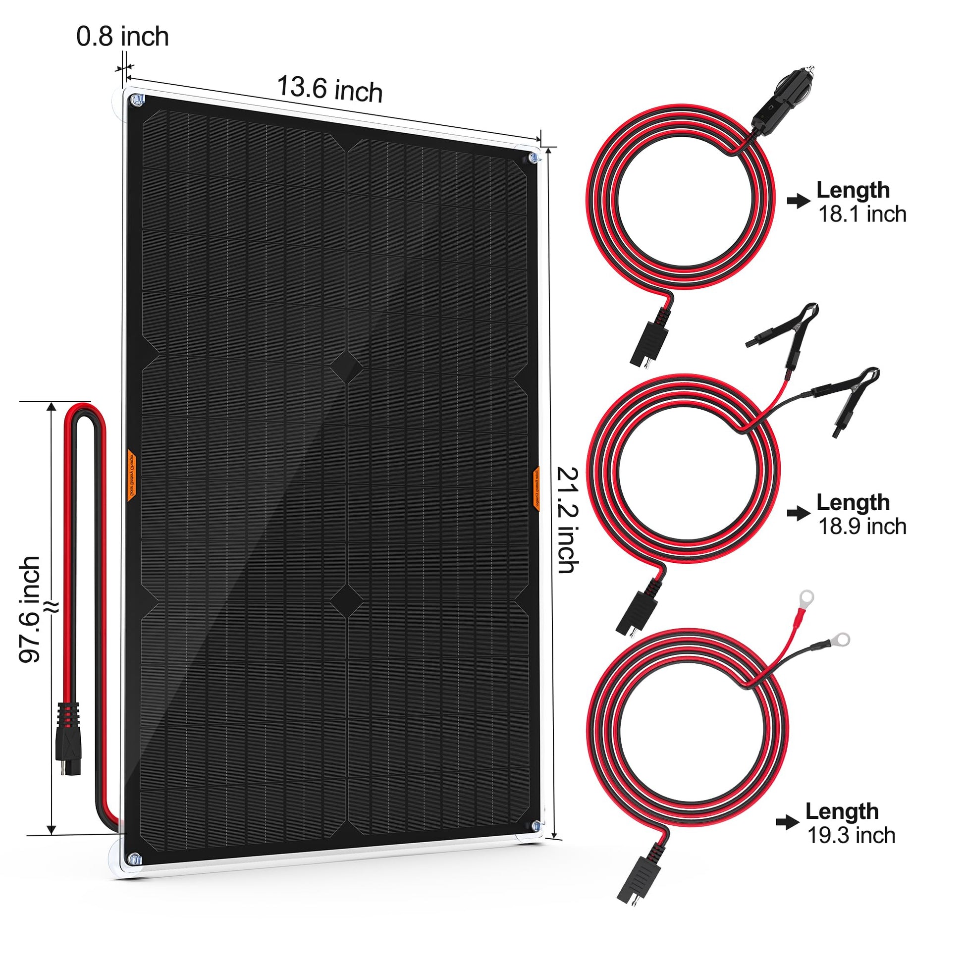 - 22 % High Conversion Rate:Monocrystalline solar battery charger use ETFE , with a light transmittance of up to 95 %. The 30 W trickle charging mode is an ideal choice for low-cost maintenance of your 12 V battery power
