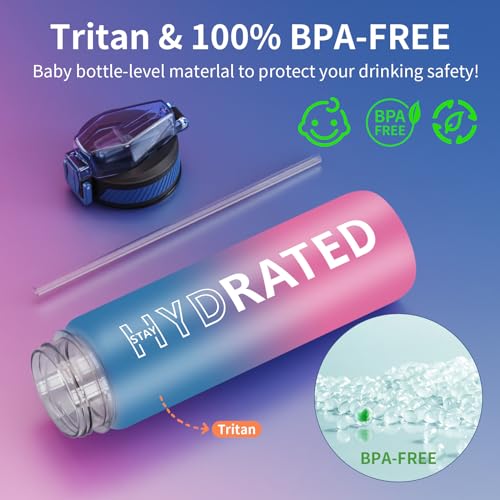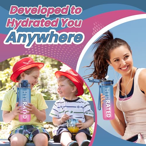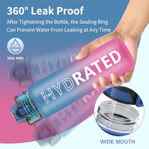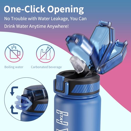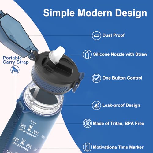 - Easily Open & Leakproof: Our motivational water bottles flip-top lid is designed with a secure lock, which effectively preventing dust and leak-proof. It can be easily opened with one hand. Our sports water bottles for school has a silicone nozzle with a straw inside to prevent turbulent water flow