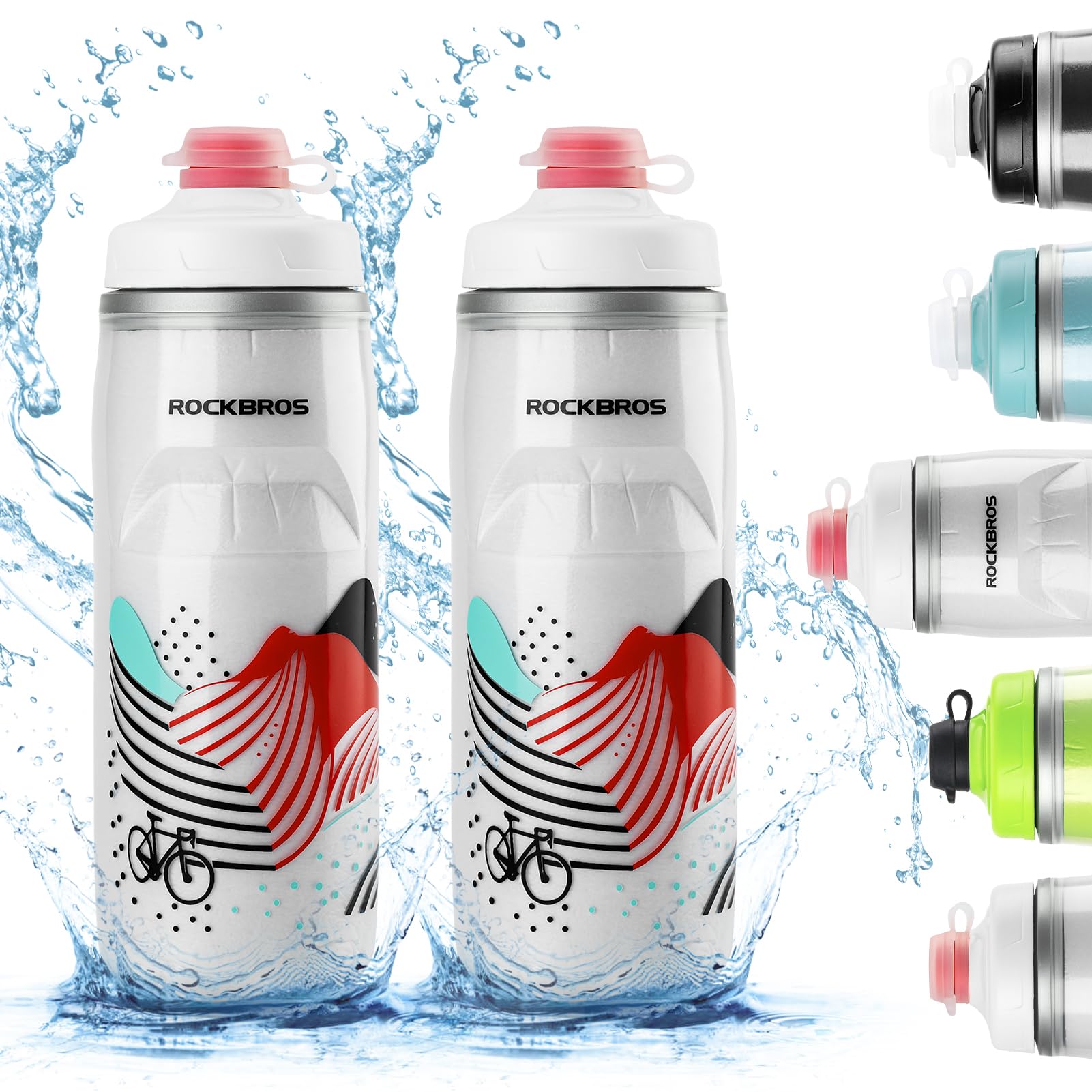 ROCKBROS Bike Water Bottle 21oz Bicycle Water Bottle for 5hrs Insulation Sports Squeeze Water Bottle with Leakproof Design