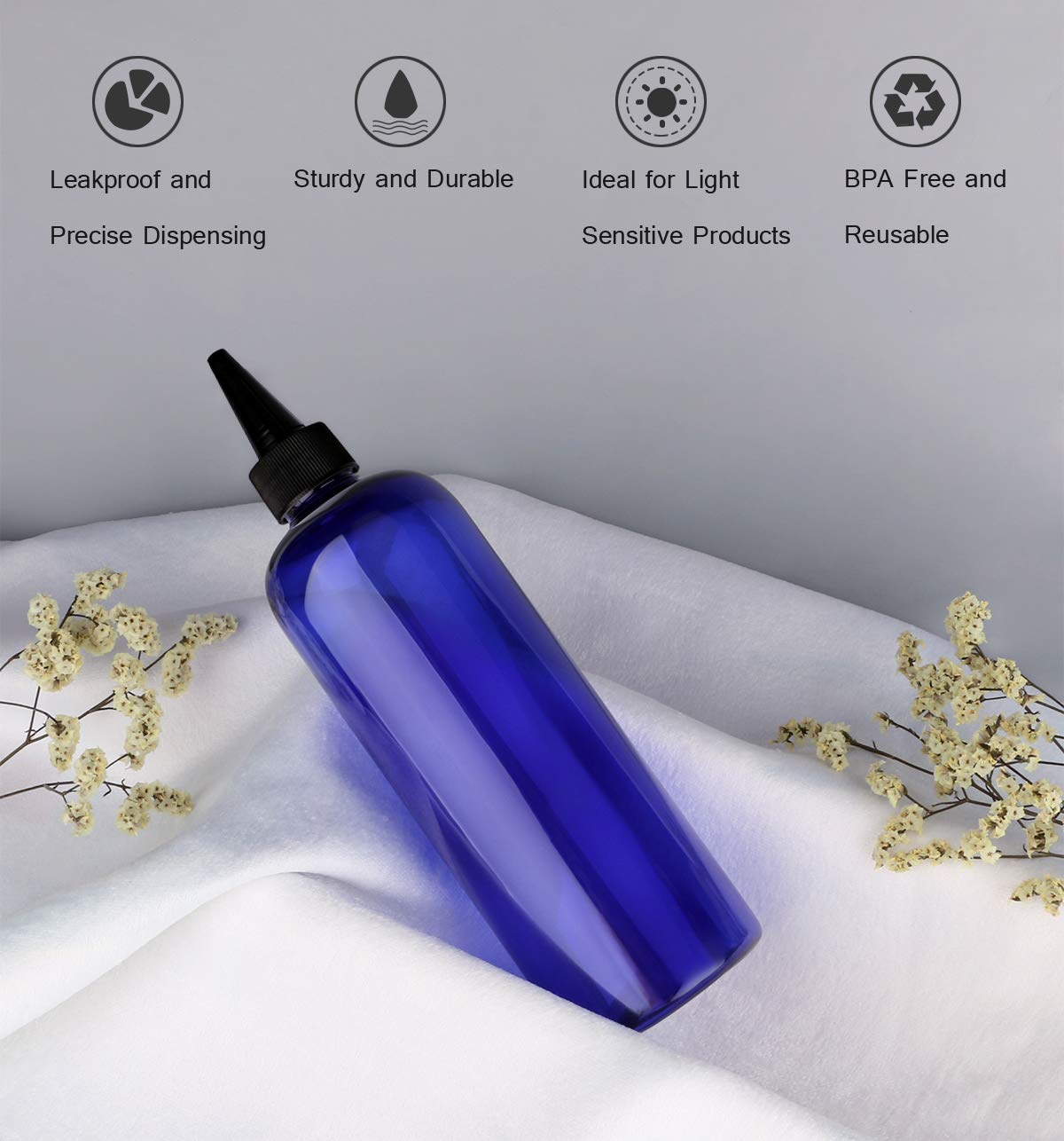 - Feature: Colored body for protecting light sensitive products.Widely use for applying hair care products; dispensing shampoo, conditioner, essential oils, liquid soaps; packing glue, ink, paint, water