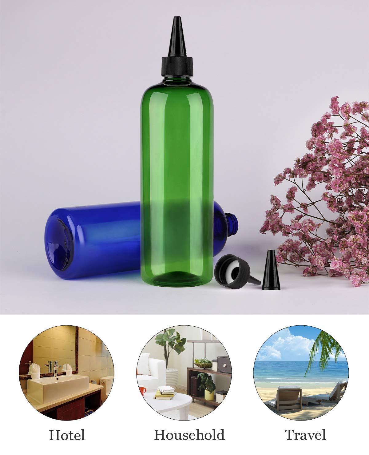Sdoot Hair Color Applicator, 16 Ounce 2 Pack Squeeze Bottles for Hair - PET Plastic Refillable With Twist Top Cap - Green and Blue