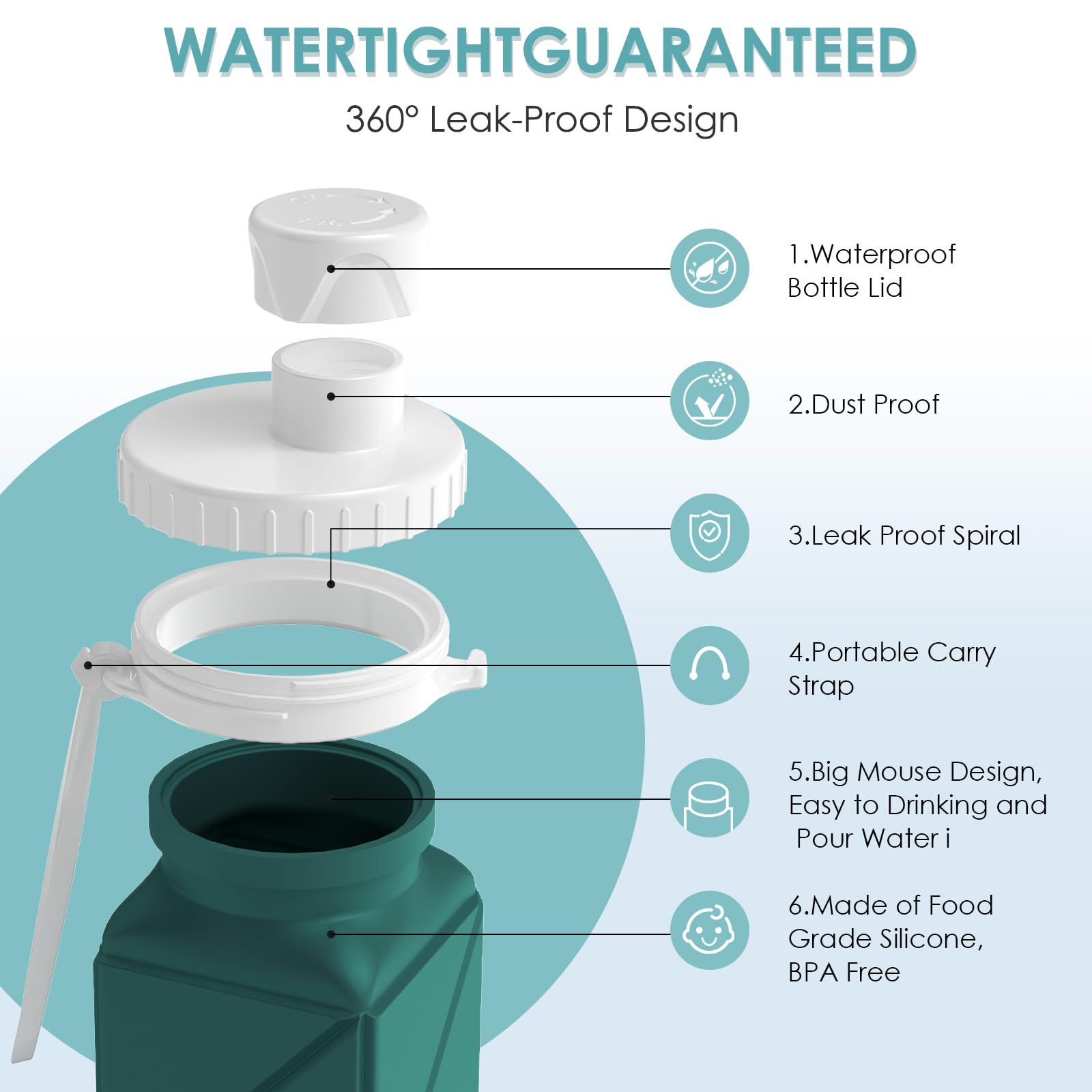 - 【LEAK-PROOF AND EASY-TO-CLEAN】The patented sealing screw cap is used to eliminate leakage and splashing and effectively prevent the bottle from accidentally opening. The wide-mouth design makes it easier to clean the inside of the collapsible soft water container or add ice or lemon to it. ❤When using for the first time, it is recommended to soak in boiling water for 10 minutes for thorough cleaning.