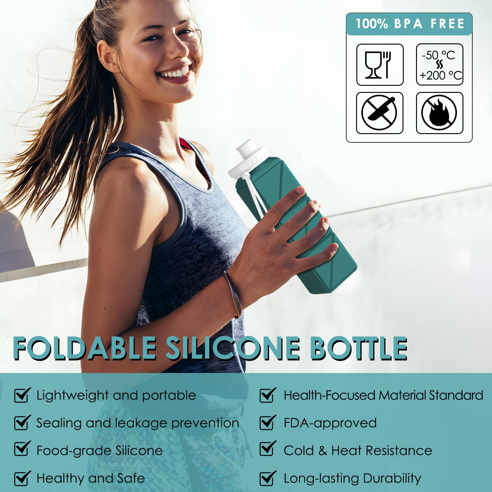 SPECIAL MADE Collapsible Water Bottle Leakproof Valve 610ML Reuseable BPA Free Silicone Foldable Water Bottle for Gym Camping HikingYoga Travel Sports Lightweight Durable 20.7oz