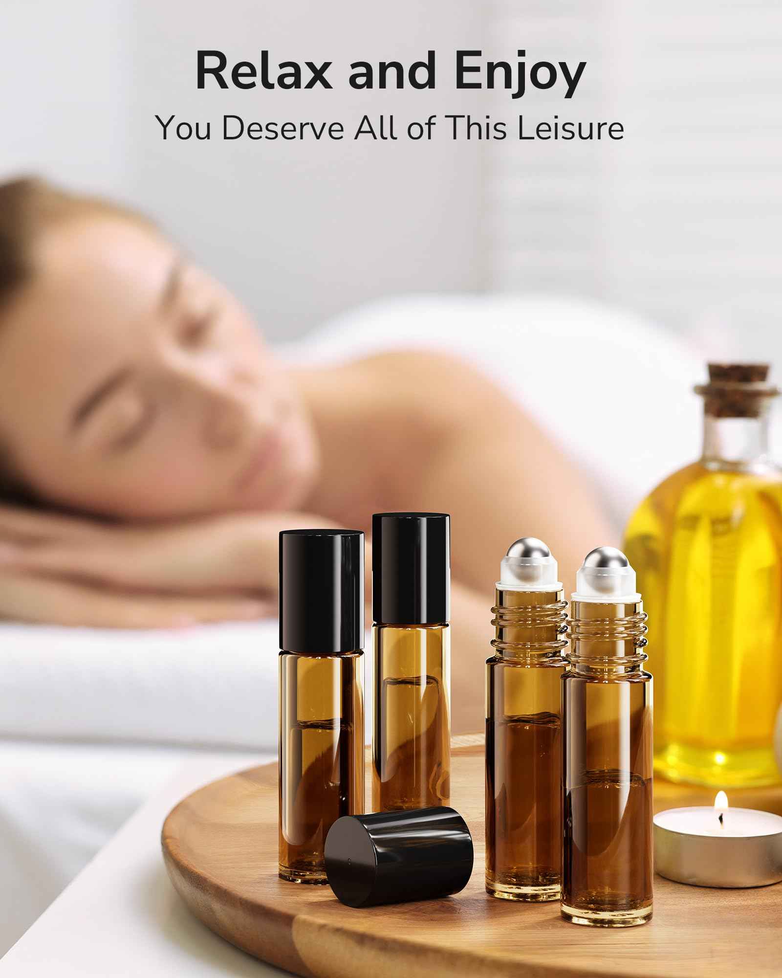 - Portable for carrying: 10ml glass roller bottles are perfect for essential oils, perfume oils, coconut oils, etc. The tiny size makes it great for traveling and easily fits in your purse. Bring your favorite scents with you on vacation or daily care for eyes, face and body.