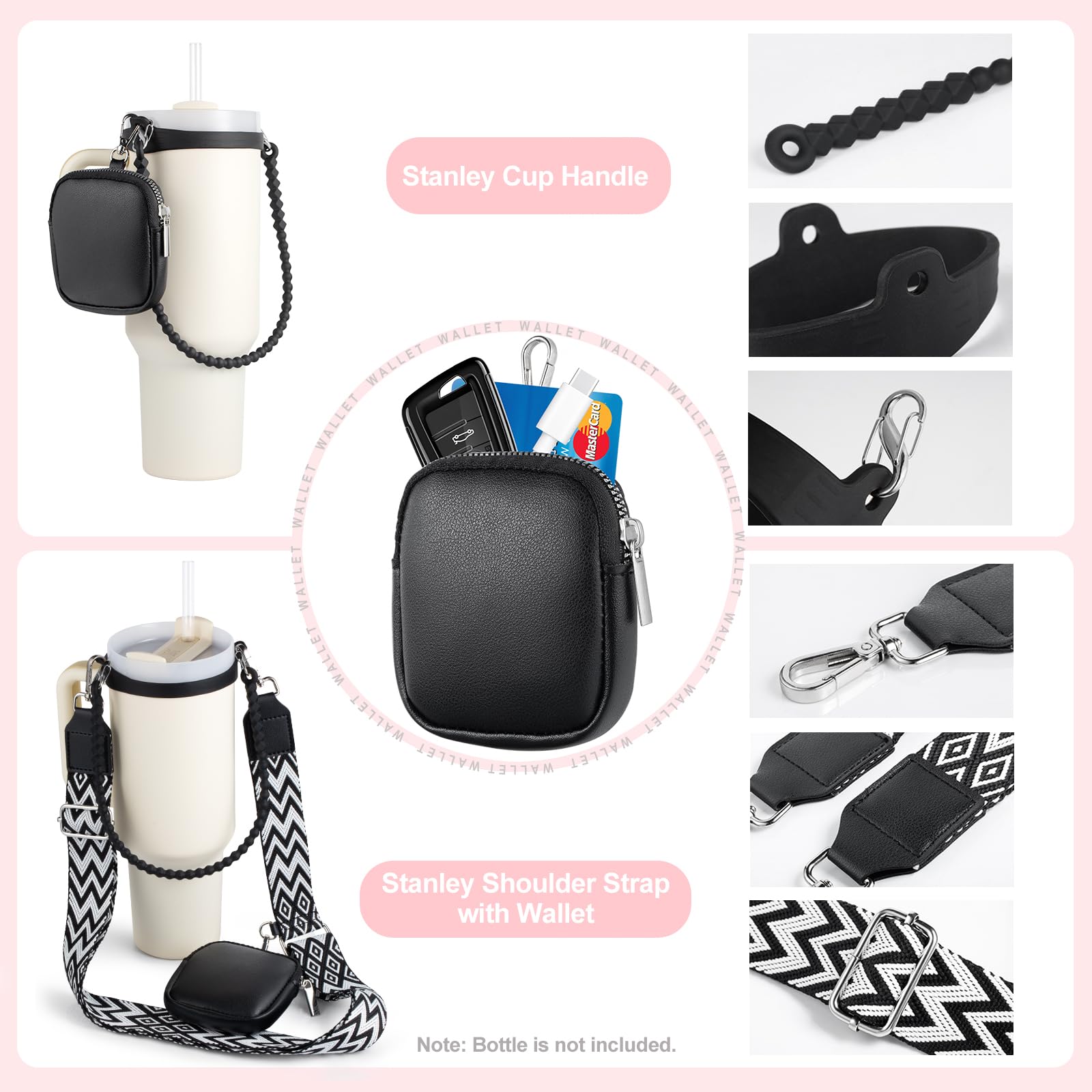 - BONUS WALLET AND EXTRA SILICONE BAND FOR STANLEY CUP ACCESSORIES- Wallet for Stanley cup carrier with strap has plenty of room for all your personal belongings such as lipsticker,coins, cash, cards,keys,etc. Extra silicone band can offer you one more choice for replacement. Water bottle sling is a must have Stanley cup accessories for drinking tumblers, free your hands, great Stanley accessories 40oz 30 oz for outdoor sports.Reminder: Bottle is not included.