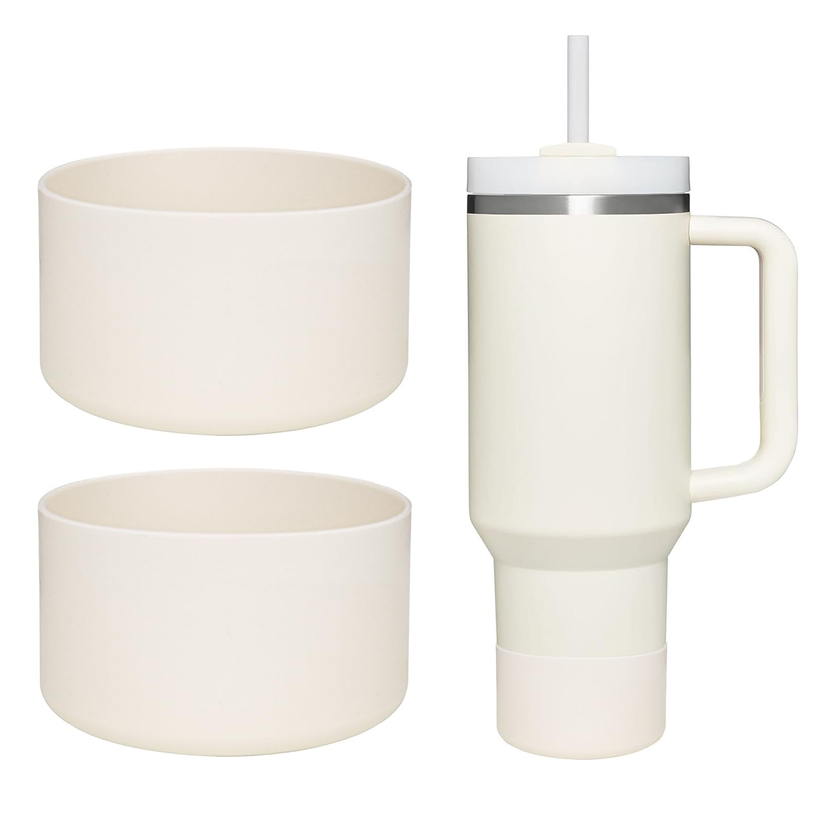 WK IEASON 2 Pcs Tumbler Bottom Protector Boot for Stanley Quencher Adventure 40oz & Stanley IceFlow 20oz 30oz and Compatible with Hydro Flask Water Bottle 12oz 21oz 24oz (Creamx2)