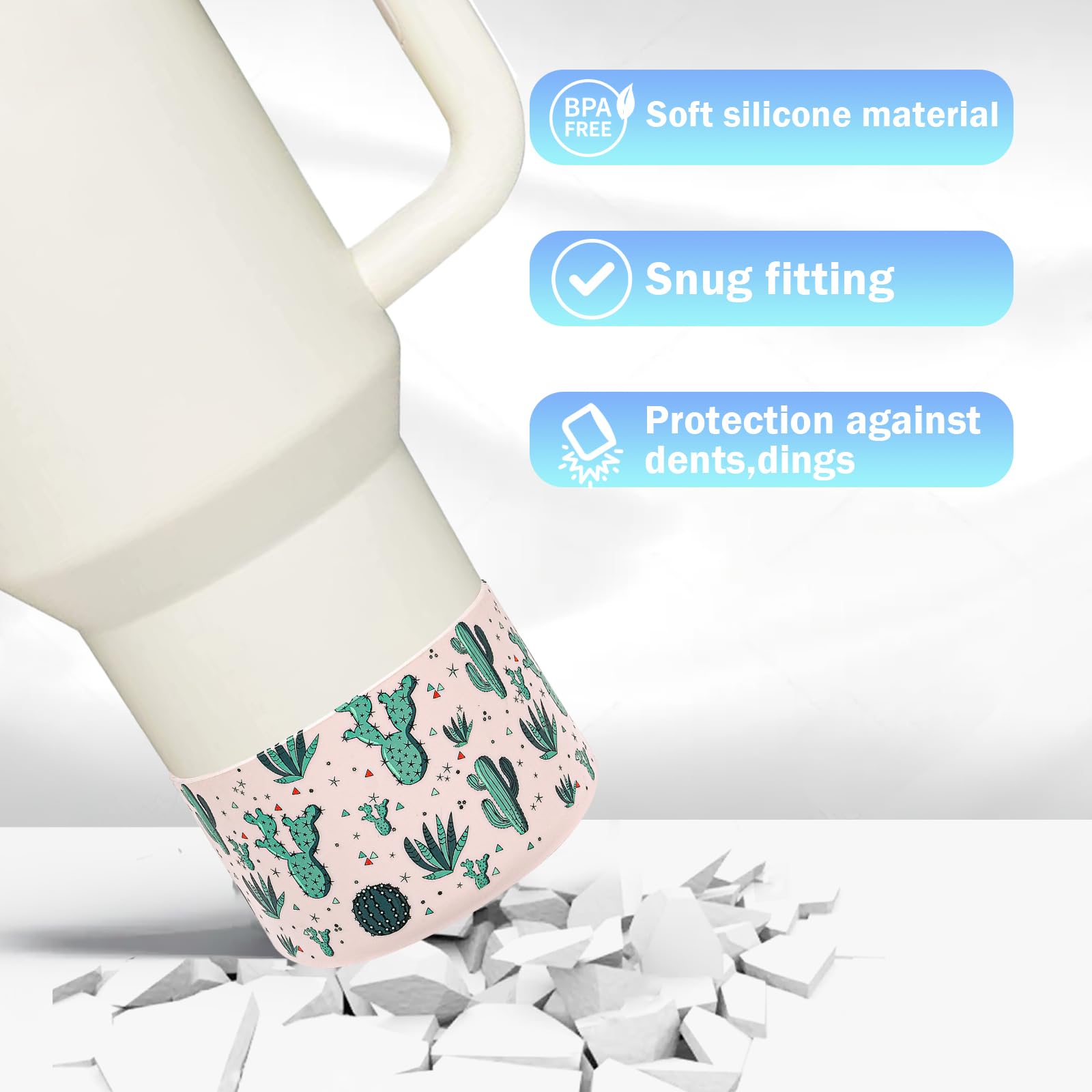 WK IEASON 2 Pcs Tumbler Bottom Protector Boot for Stanley Quencher Adventure 40oz & Stanley IceFlow 20oz 30oz and Compatible with Hydro Flask Water Bottle 12oz 21oz 24oz (Rose Quartz cactusx2)