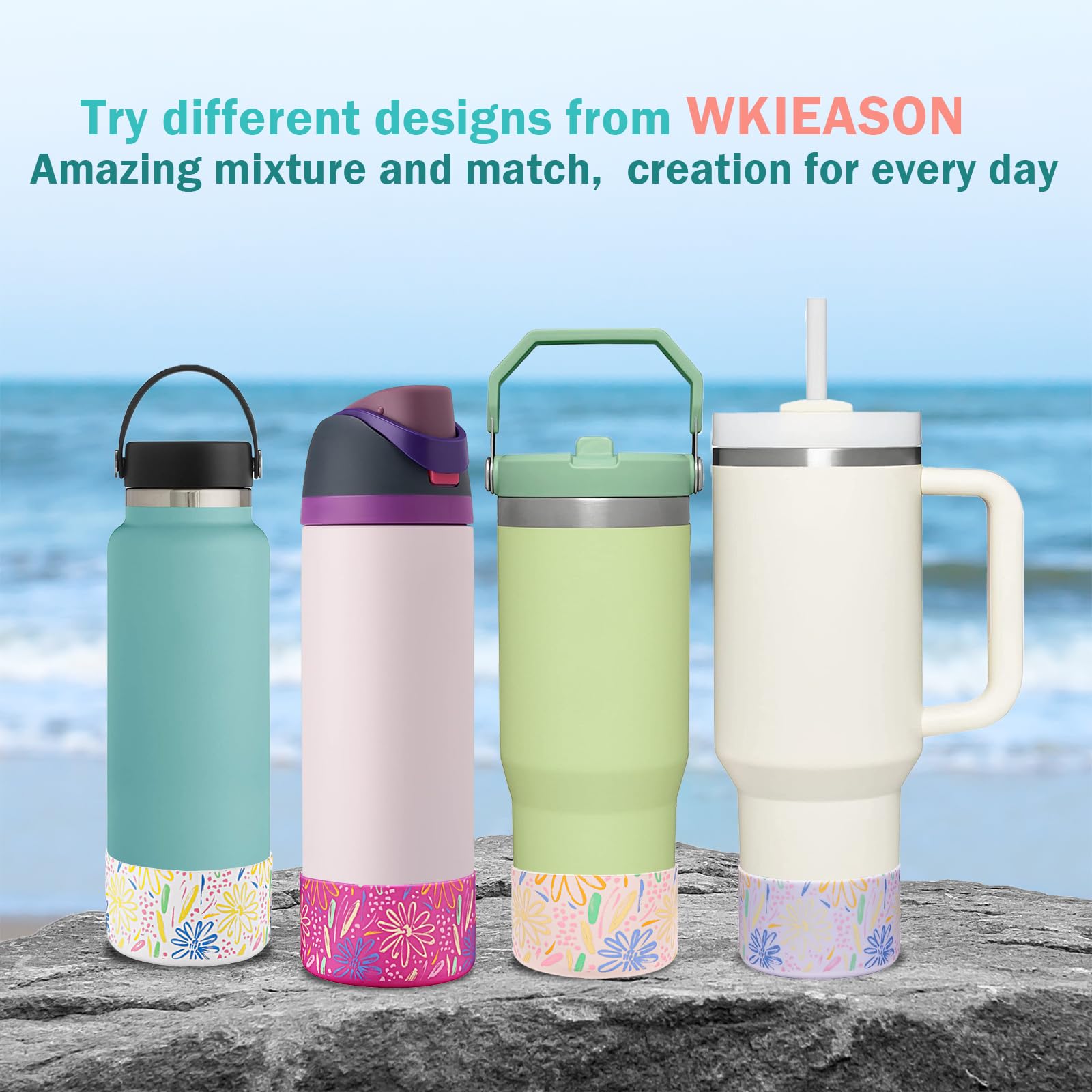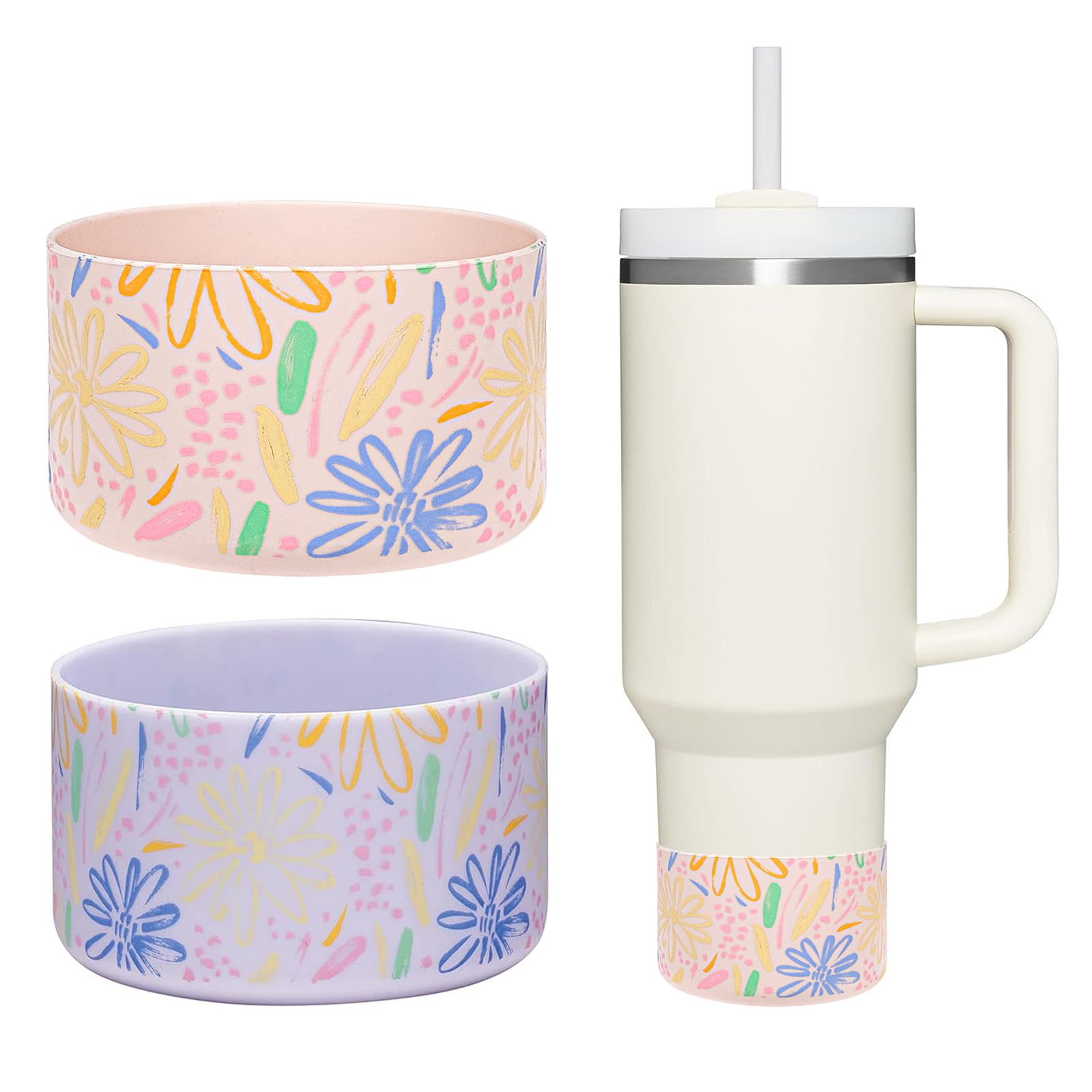 WK IEASON 2 Pcs Tumbler Bottom Protector Boot for Stanley Quencher Adventure 40oz & Stanley IceFlow 20oz 30oz and Compatible with Hydro Flask Water Bottle 12oz 21oz 24oz (Rose Quartz/Fog Flowers)