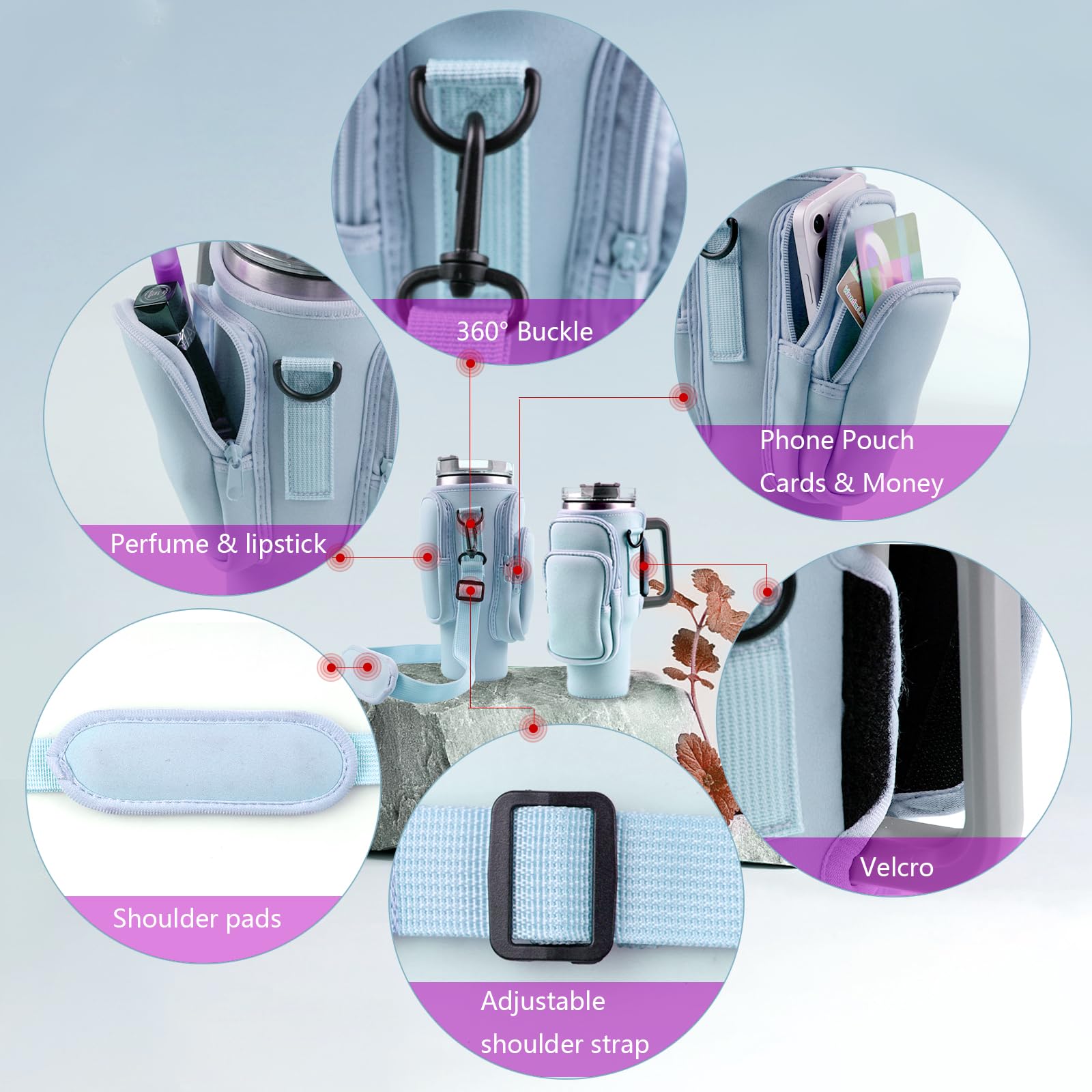 - ✔️ Versatile Compatibility Stanley Cup Holder: Specifically tailored as an ideal accessory for Stanley Quencher H2.0 FlowState Tumbler 40 oz with Handle, Simple and Modern 40 oz Tumbler with Handle, and Stanley Adventure Quencher Travel Tumbler 40 oz. Whether you're on a hike, bike ride, run, gym workout, or traveling, this water bottle bag complements your Stanley cup perfectly, ensuring convenience and functionality wherever you go.