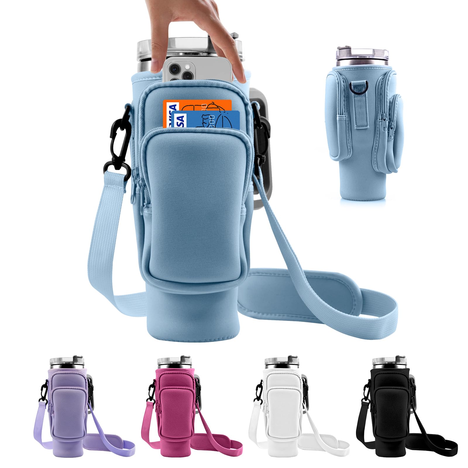 WNGERGOU Water Bottle Carrier Bag with Phone Pocket for Stanley, Water Bottle Holder with Strap for Stanley Accessories 40 oz, Stanley Cup Accessories Total 3 Pockets, Stanley Cup Bag (Blue)