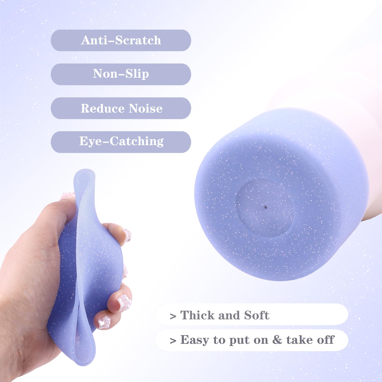 WORBSS Glitter Silicone Boot Sleeve for Stanley Cup H2.0 40oz Accessories & Hydro Flask 18-24oz 2.85-3.0 inch Tumbler Wide Mouth Water Bottle Protector Bottom Sleeve Cover Bumper Best Gifts