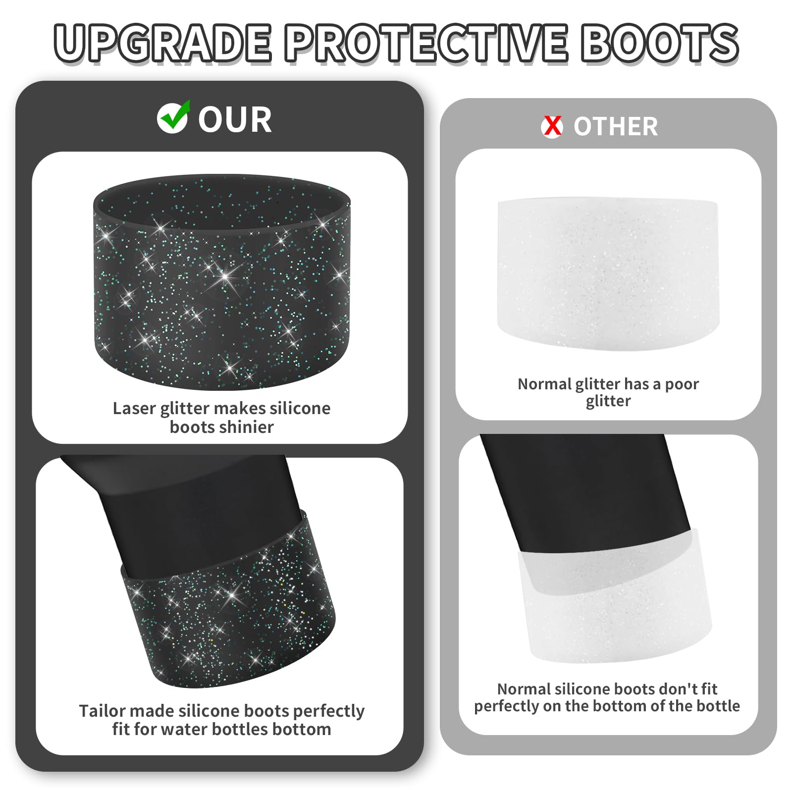 - SATISFACTION ASSURANCE: We take pride in our high-quality Glittering Silicone Protective Boot and stand by its excellence. If you have any questions or concerns about our product, don't hesitate to reach out. Your contentment is our utmost priority