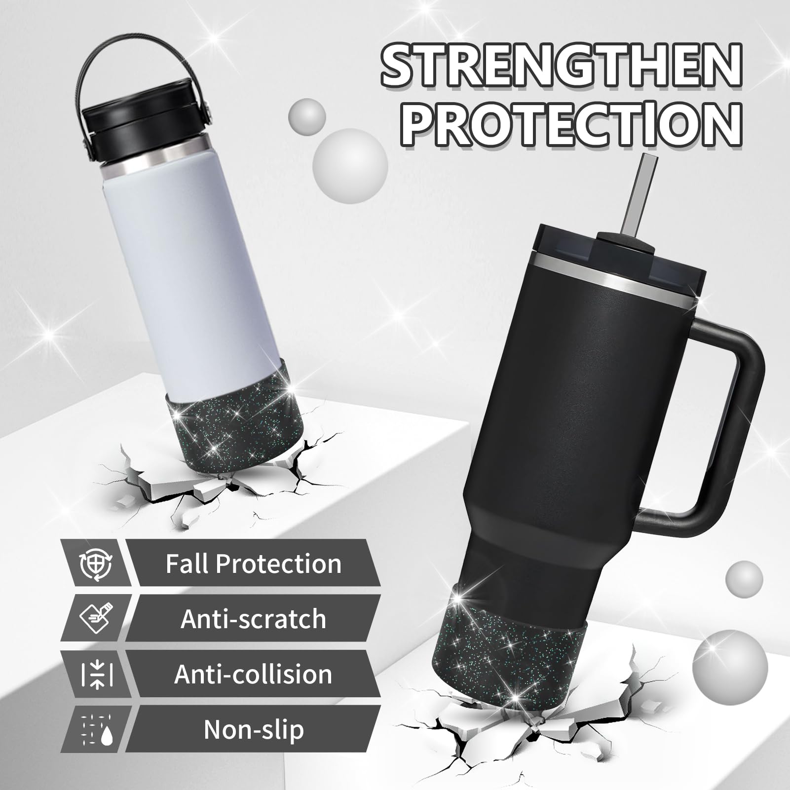 - PREMIUM SHIMMER: Crafted with top-notch materials, our without BPA silicone boot boasts a radiant glitter finish. Thicker; anti-slip; and noise-reducing; it provides superior defense against dents and damage. Safeguard your valuable Cup in style