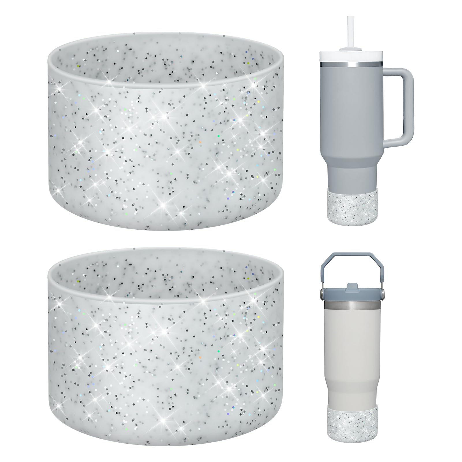 WUQID 2 Pack Bling Silicone Boot Compatible with Stanley Quencher Adventure 40oz & Stanley IceFlow 20oz 30oz, Reduces Dents Protective Silicone Water Bottle Bottom Cover Sleeve