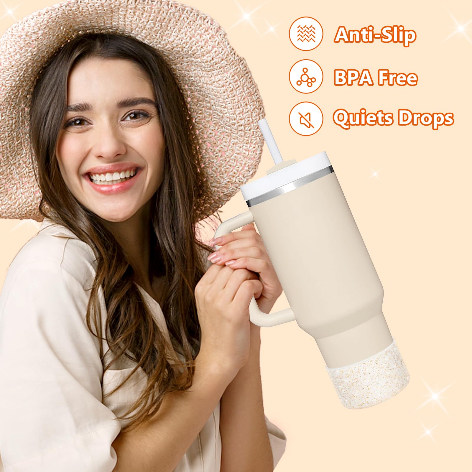 - PREMIUM SHIMMER: Crafted with top-notch materials, our without BPA silicone boot boasts a radiant glitter finish. Thicker; anti-slip; and noise-reducing; it provides superior defense against dents and damage. Safeguard your valuable Cup in style