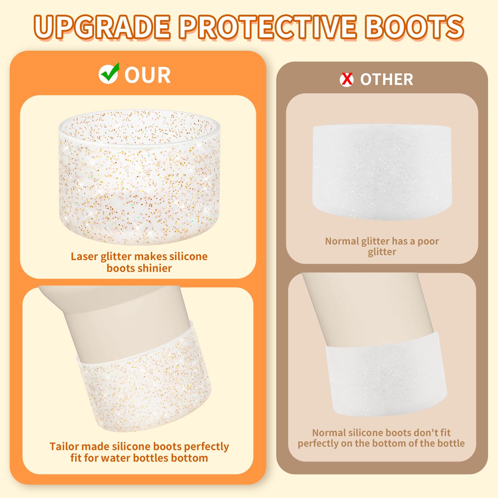 - SATISFACTION ASSURANCE: We take pride in our high-quality Glittering Silicone Protective Boot and stand by its excellence. If you have any questions or concerns about our product, don't hesitate to reach out. Your contentment is our utmost priority