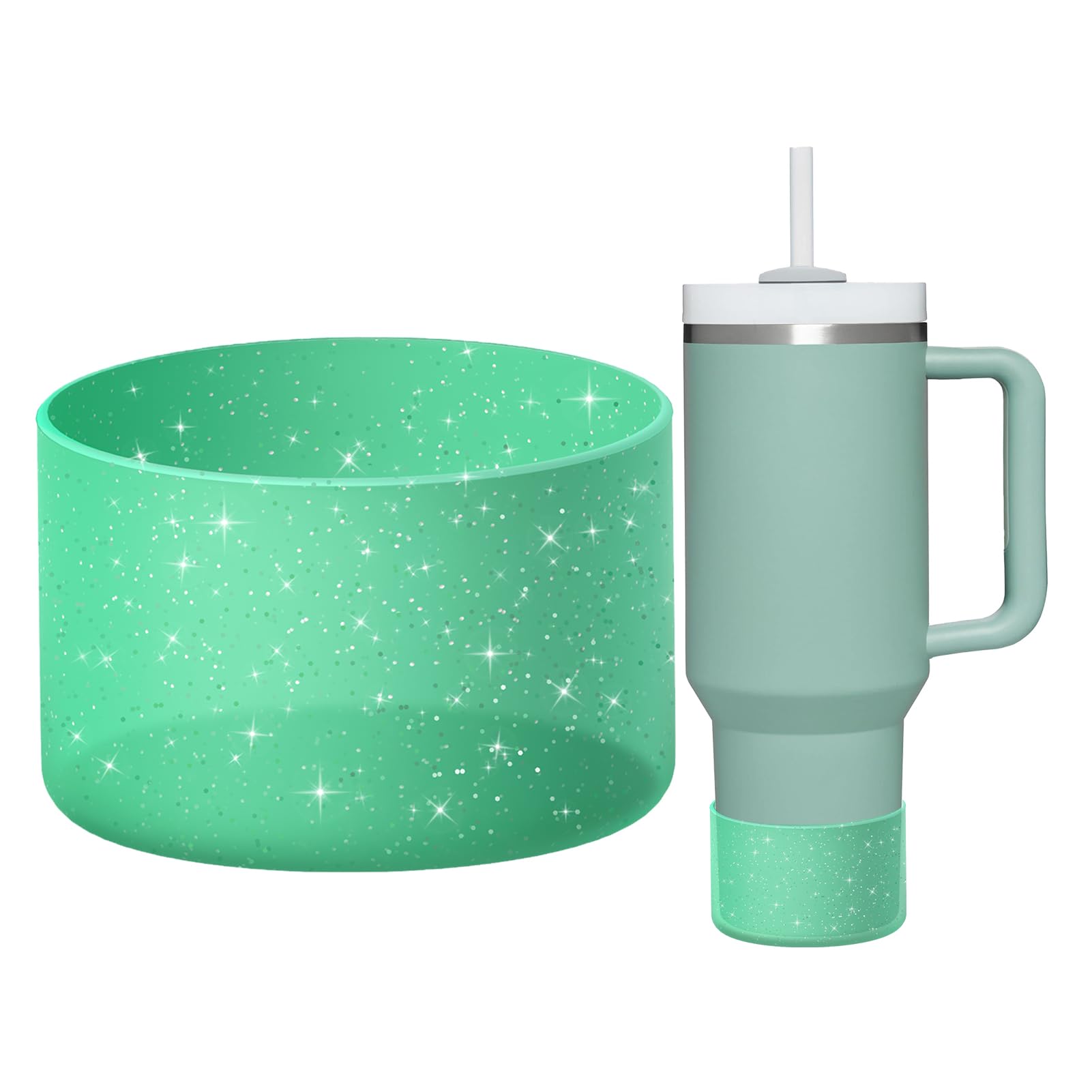 WUQID Protective Bling Silicone Boot Sleeve, Compatible with Stanley Tumbler 20-40oz & Hydro Flask Bottle 12oz-24oz, Glitter Reduces Dents Sleeve Cover for More Bottles/Tumblers Bottom of 2.83-2.95in
