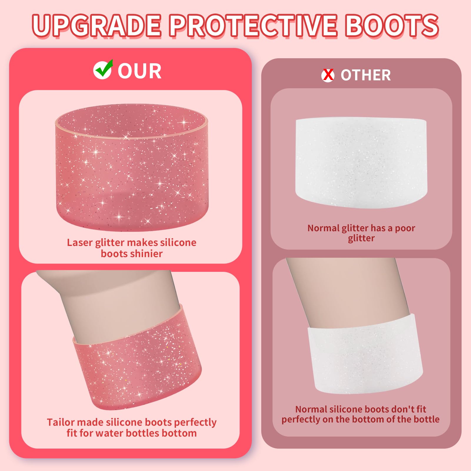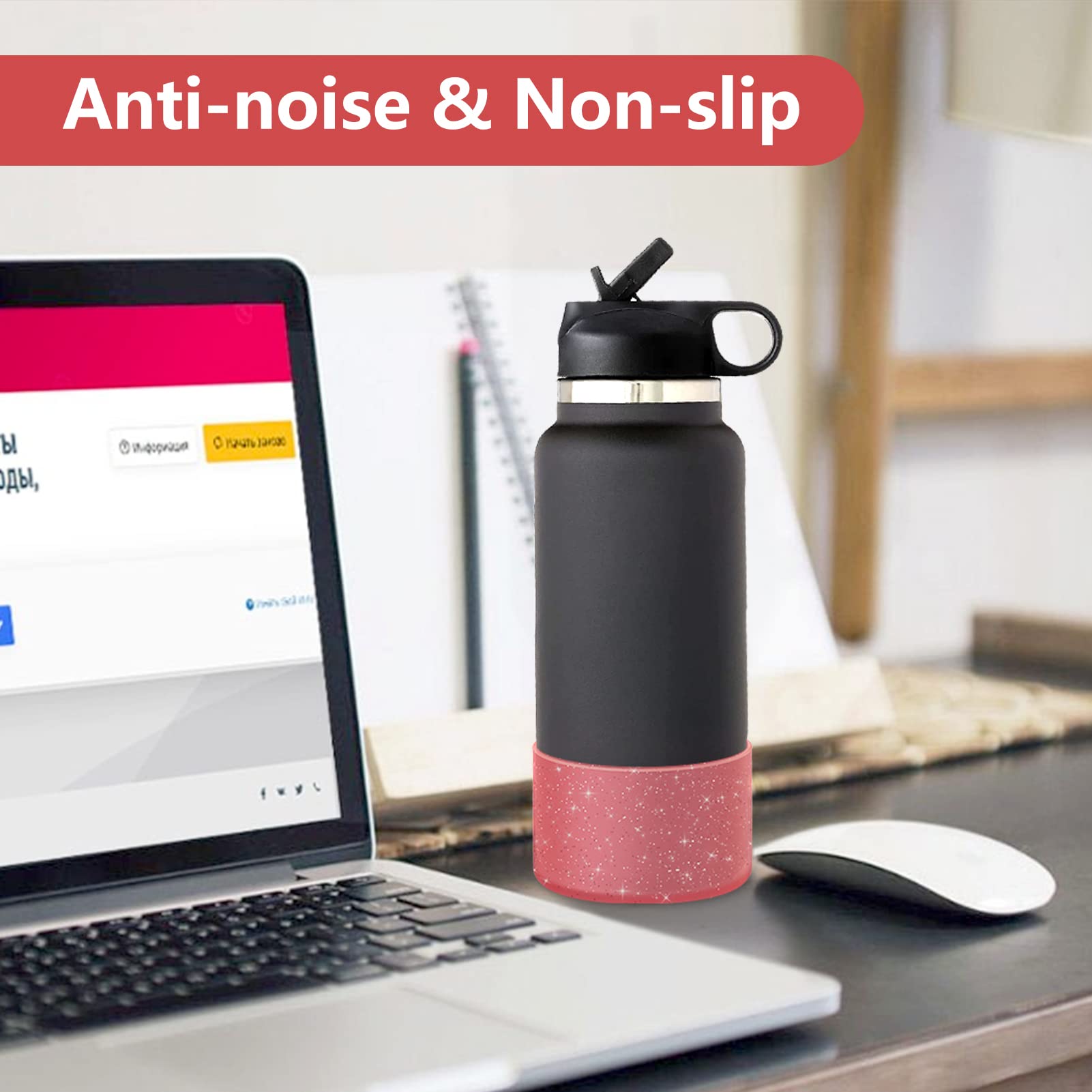 WUQID Protective Bling Silicone Boot Sleeve, Compatible with Stanley Tumbler 20-40oz & Hydro Flask Bottle 12oz-24oz, Glitter Reduces Dents Sleeve Cover for More Bottles/Tumblers Bottom of 2.83-2.95in