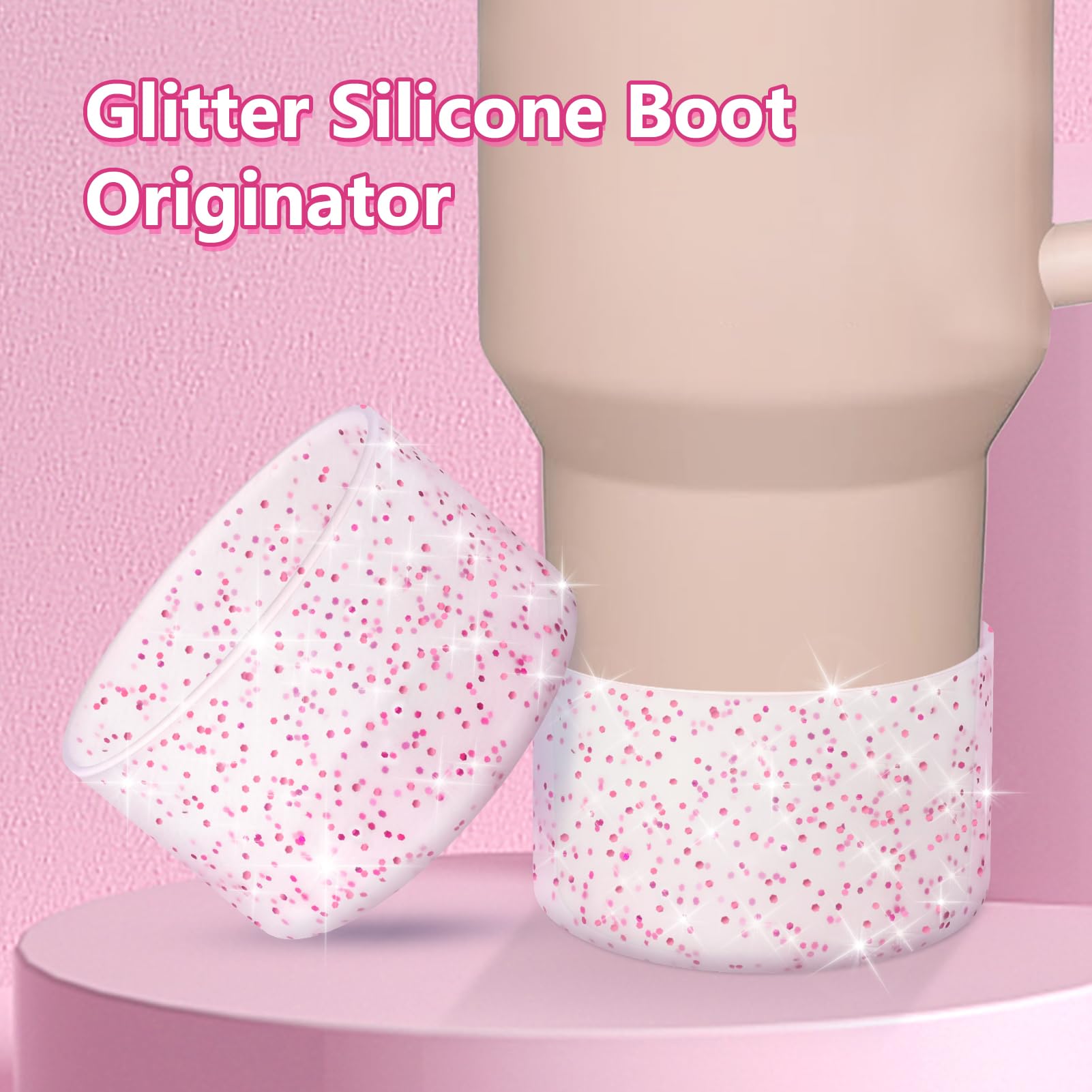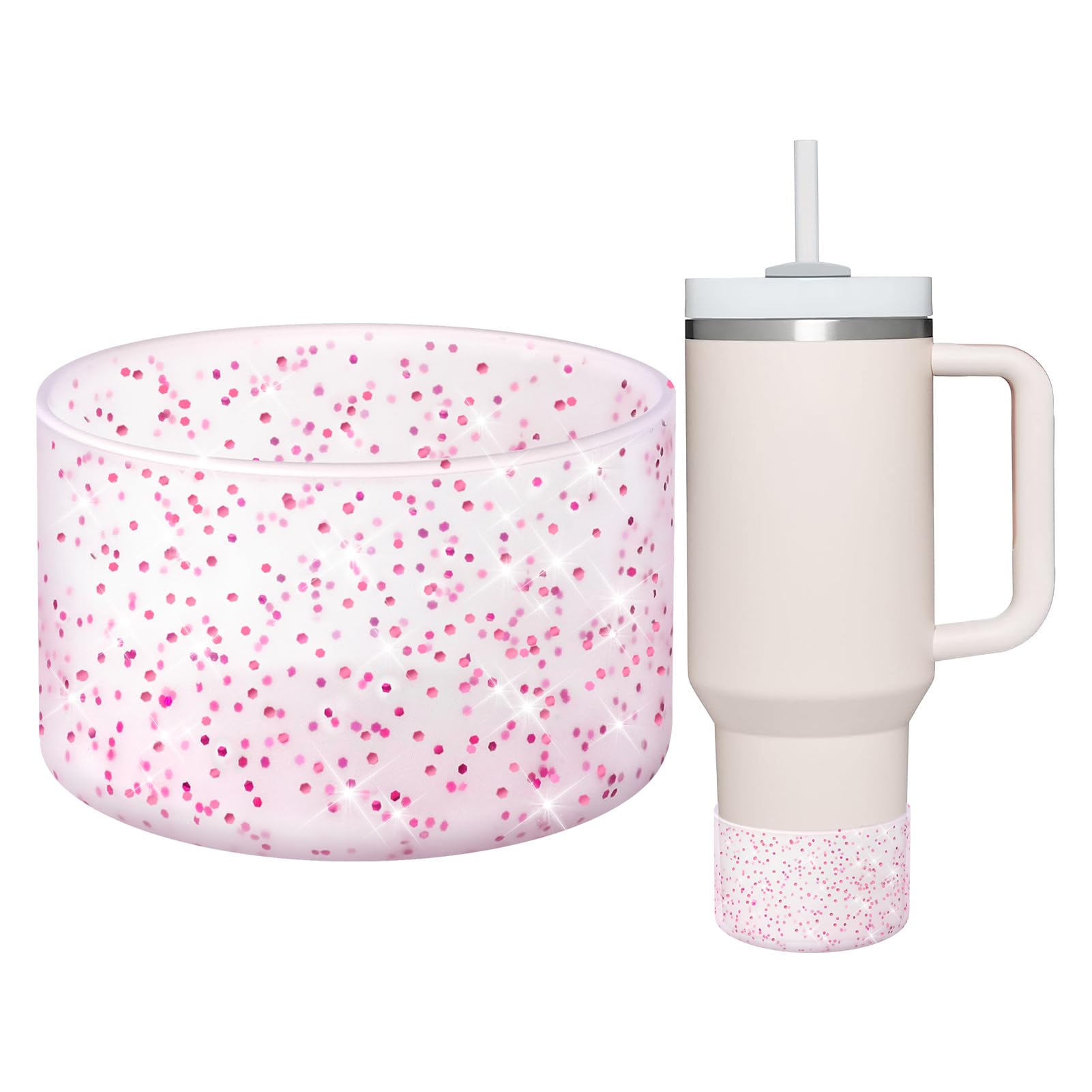 WUQID Protective Bling Silicone Boot Sleeve, Compatible with Stanley Tumbler 20-40oz & Hydro Flask Bottle 12oz-24oz, Glitter Reduces Dents Sleeve Cover for More Bottles/Tumblers Bottom of 2.83-2.95in