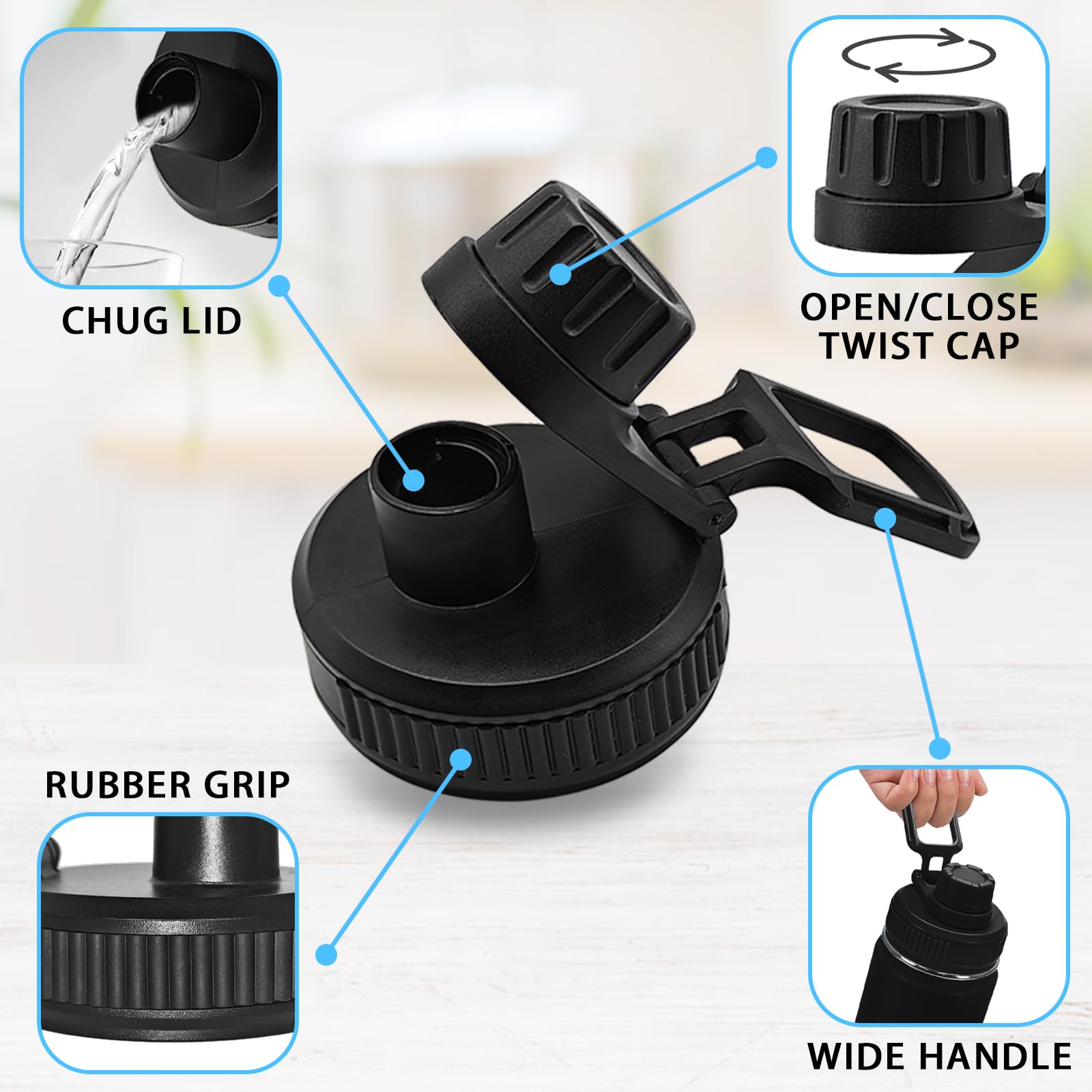 - Easy Carry Handle: The replacement water bottle lid with practical handle.It can be lifted and pulled by fingers easily,very convenient to carry and use.Spout lid allows maximum water flow and easy one-handed drinking.