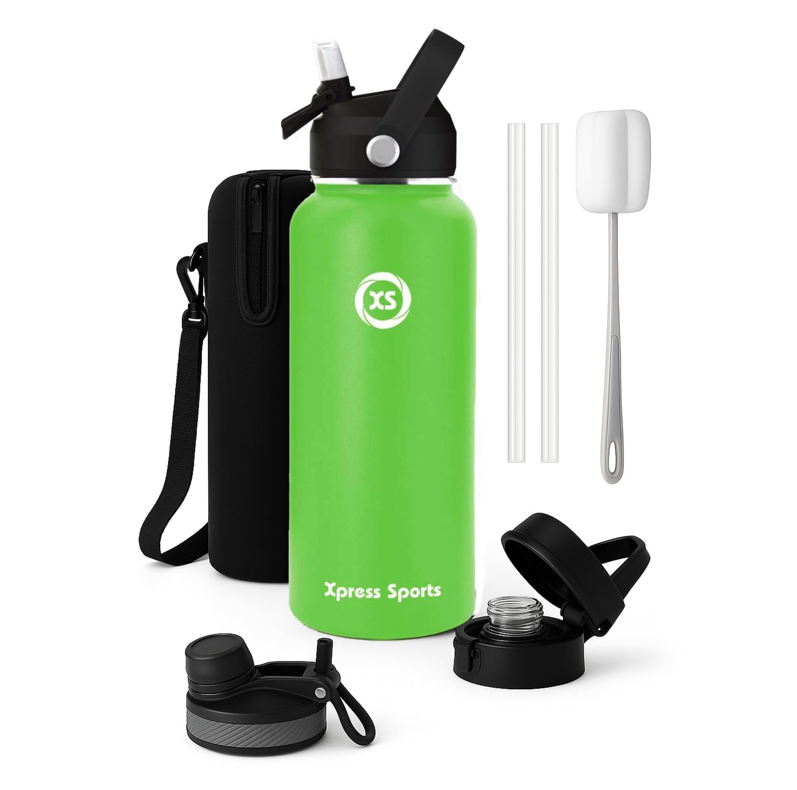 Xpress Sports 32oz Insulated Water Bottle with Straw & Handle- 24hr Cold/12hr Hot, Leakproof Stainless Steel Metal Bottle for Gym, Travel & Sports