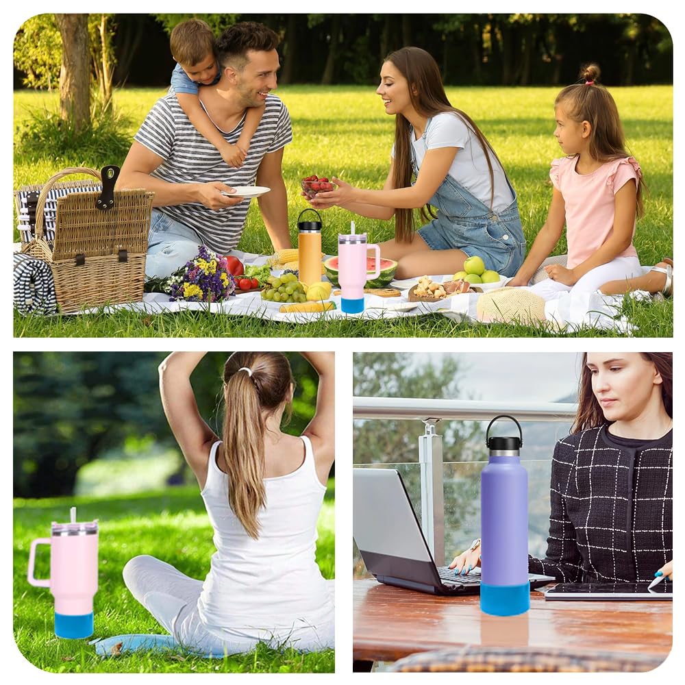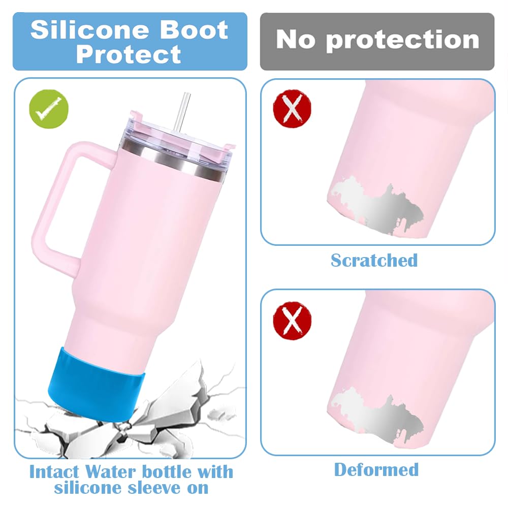 - 【Universal Compatibility】: The silicone sleeve fits most vacuum-insulated water bottles, including the 40 oz Stanley Quencher H2.0 (Boot Size: 2.85inch inside diameter, 1.69 inch high). It is designed to fit a wide range of bottles for Stanley Adventure Quencher Tumbler/Yeti Rambler/HydroFlask/Simple Modern/Iron Flask/MaxBase Tumbler/(Not all oz sizes are applicable). which perfectly fits the cup bottom and won't fall off easily.