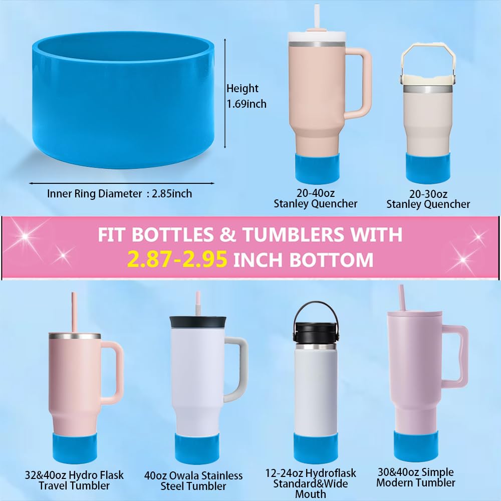 - 【Product Details】:Our silicone boots are 2.85 inches in diameter and 1.69 inches high. Suitable for tumblers or water bottles with a base diameter of 2.8-2.95 inches. If you are not sure whether it is suitable, please measure the diameter of the bottom of your bottle before purchasing.