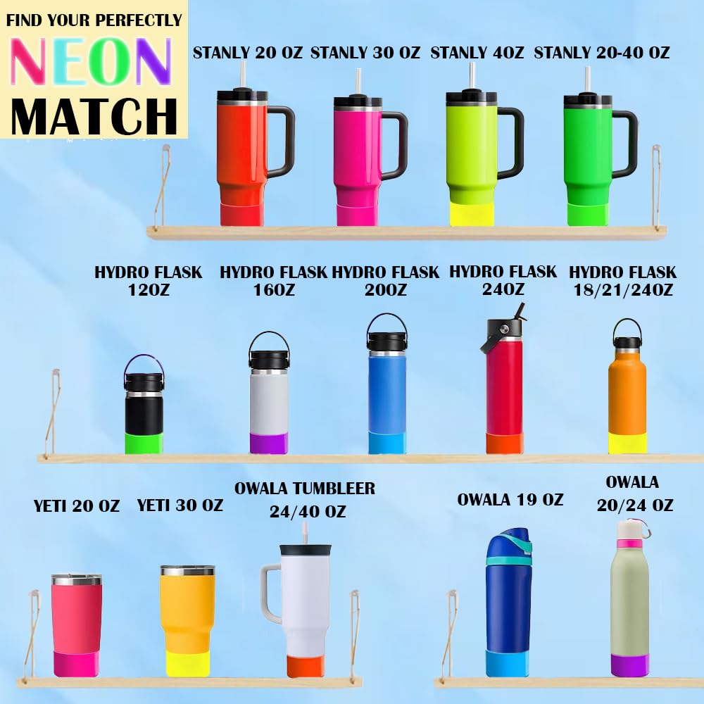 - 【Neon Matte Luster】: Add a luxurious aesthetic to your water bottle with the Neon matte cup sleeve. This boot not only protect your water bottle from noise, dents, and damage, they also have a comfortable grip, creating a stylish look for your favorite water bottle!
