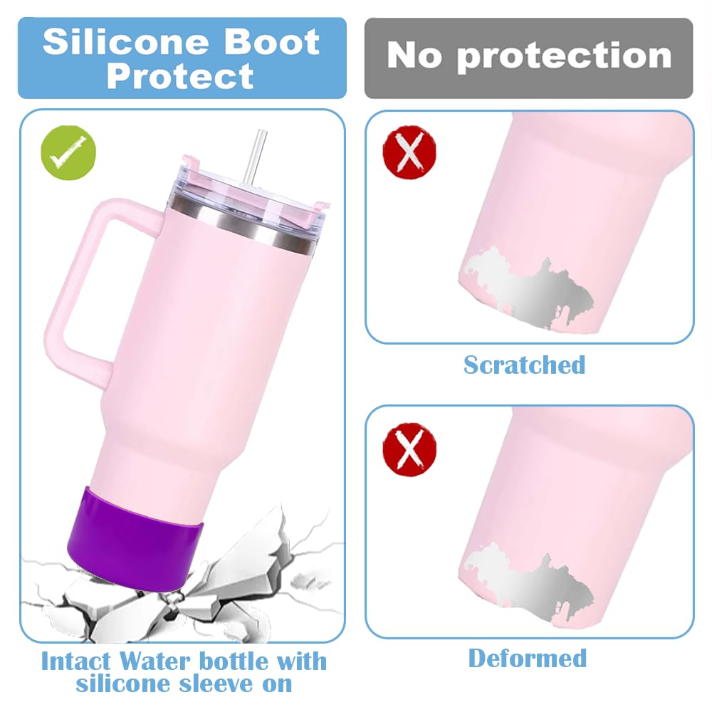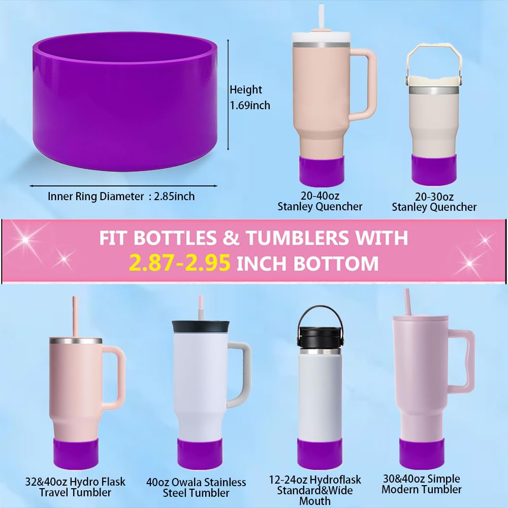 - 【Universal Compatibility】: The silicone sleeve fits most vacuum-insulated water bottles, including the 40 oz Stanley Quencher H2.0 (Boot Size: 2.85inch inside diameter, 1.69 inch high). It is designed to fit a wide range of bottles for Stanley Adventure Quencher Tumbler/Yeti Rambler/HydroFlask/Simple Modern/Iron Flask/MaxBase Tumbler/(Not all oz sizes are applicable). which perfectly fits the cup bottom and won't fall off easily.