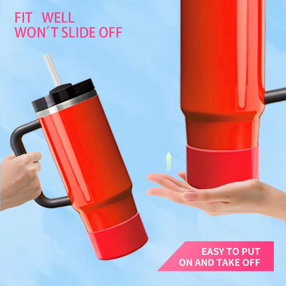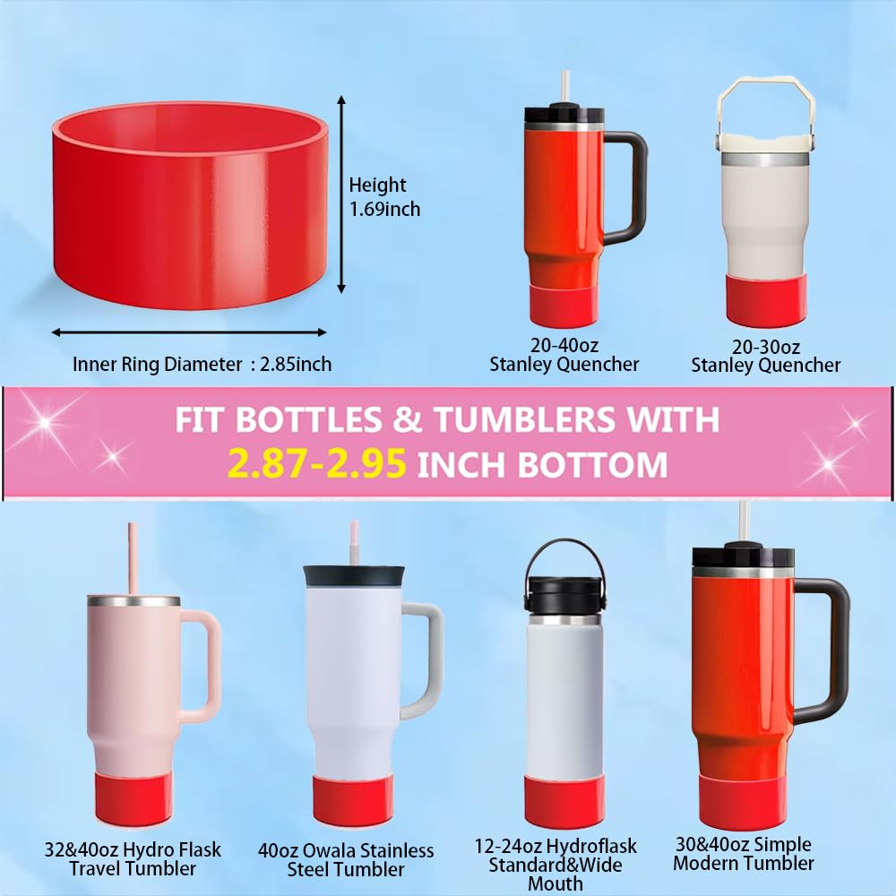 - 【Universal Compatibility】: The silicone sleeve fits most vacuum-insulated water bottles, including the 40 oz Stanley Quencher H2.0 (Boot Size: 2.85inch inside diameter, 1.69 inch high). It is designed to fit a wide range of bottles for Stanley Adventure Quencher Tumbler/Yeti Rambler/HydroFlask/Simple Modern/Iron Flask/MaxBase Tumbler/(Not all oz sizes are applicable). which perfectly fits the cup bottom and won't fall off easily.