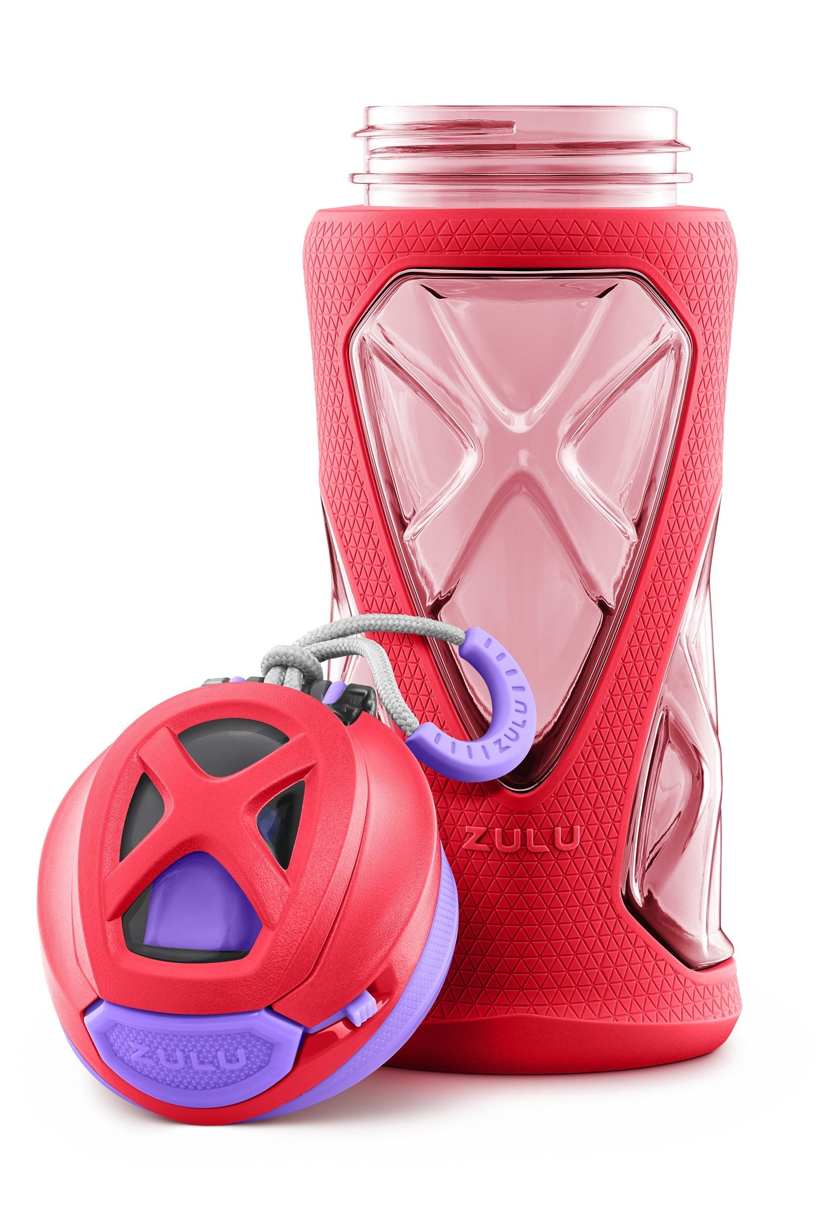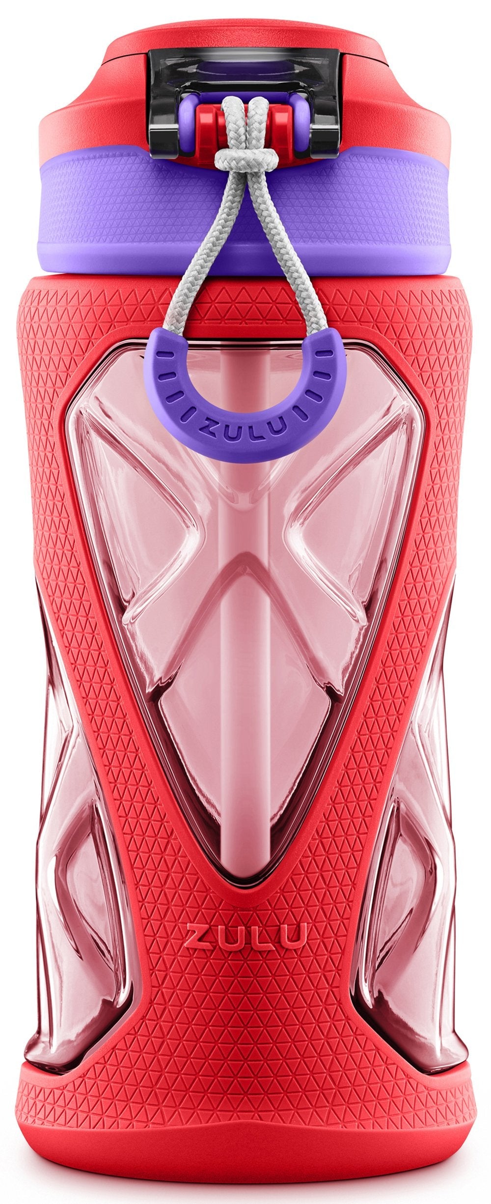 Details: The ZULU Torque 16oz plastic kids water bottle keeps your little hydrated, it's designed with a silicone sleeve for impact protection and durable Eastman Tritan plastic which won't crack, stain, or smell. Torque features leak-proof locking lid design that hides away the straw when you're on the go but easy to open with one hand with a touch of a button. FDA food grade silicone straw minimizes spills and stays clean and concealed when not in use. A built-in carry loop makes it super easy to travel with and bottle is cup holder friendly and perfect for school, sports, and recreation. All parts are BPA-free and dishwasher safe.